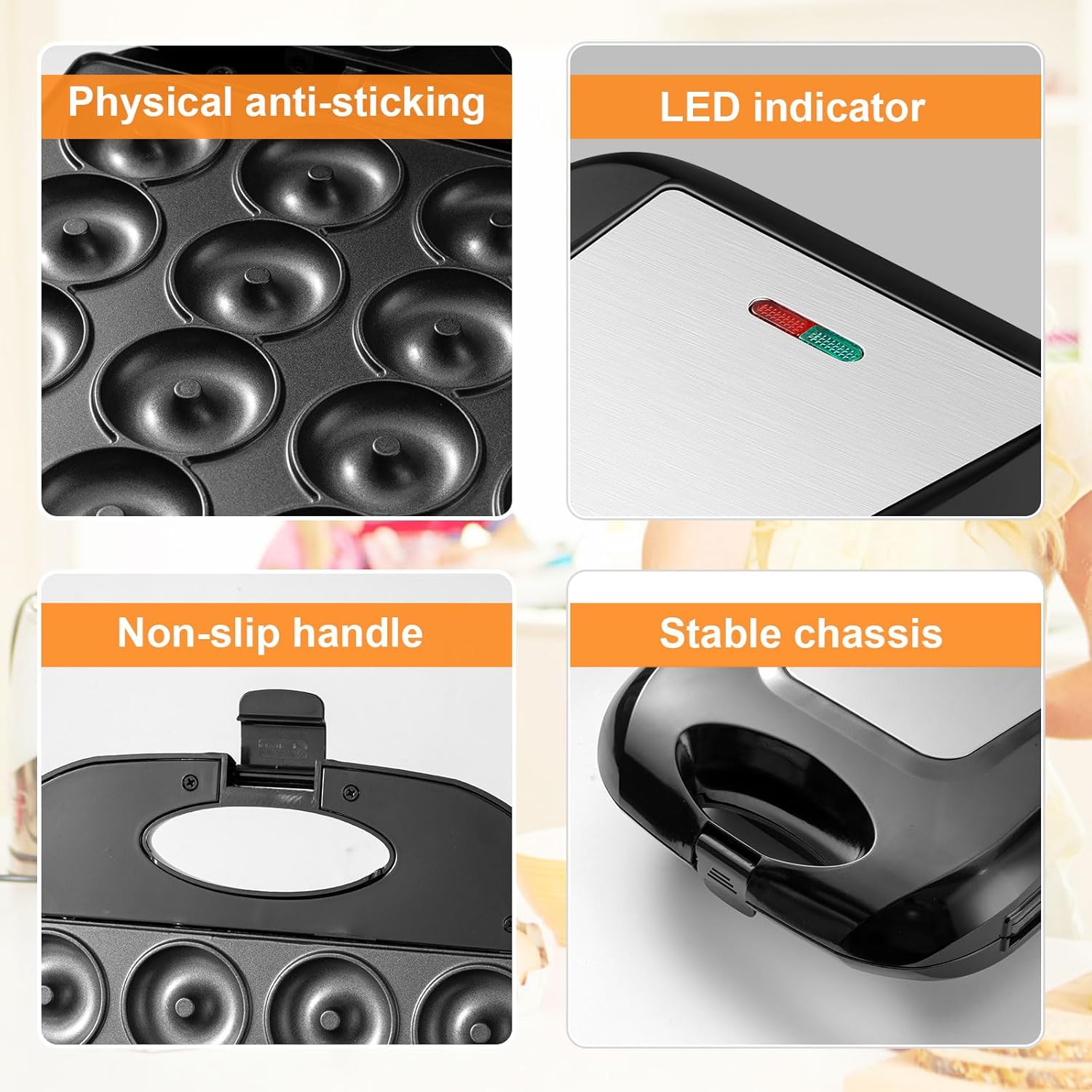 • Special Feature : 16-Hole Mini Donut Maker, Lightweight, Mini Oven Mitts & Oil Brush, Non Stick Coating, Scratch Resistant 16-Hole Mini Donut Maker, Lightweight, Mini Oven Mitts & Oil Brush, Non Stick Coating, Scratch Resistant