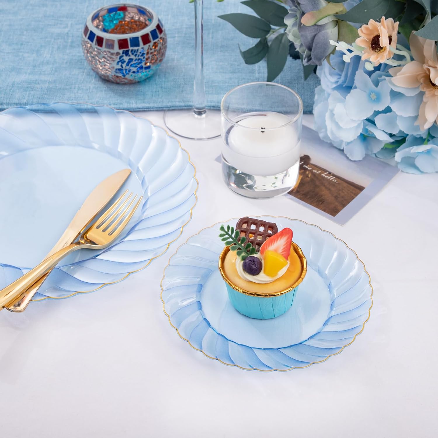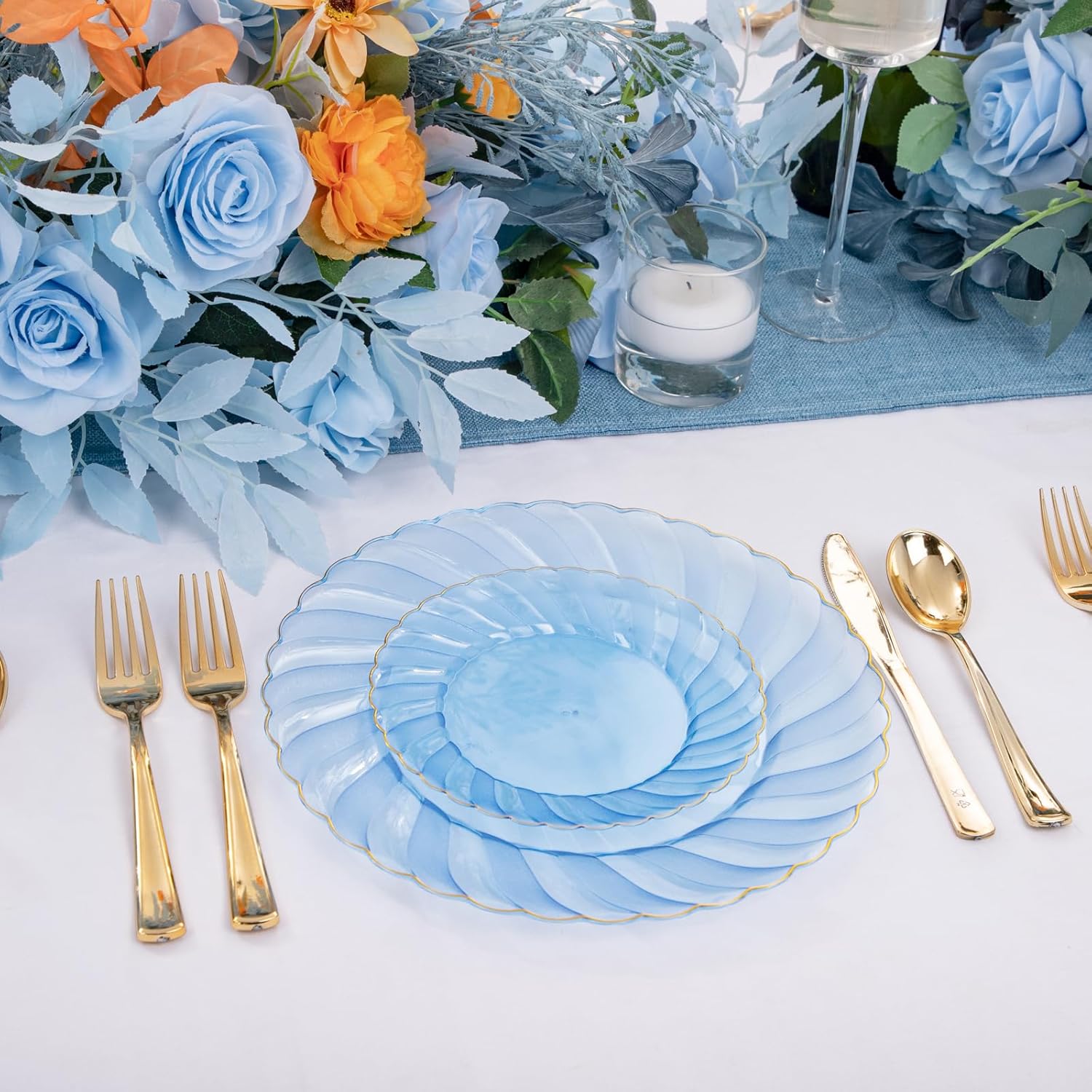 • Convenient and Hassle-Free: With blue gold plates, cleanup becomes a breeze, allowing you to focus on enjoying the occasion rather than worrying about washing dishes afterward. If you need to use these gold plates again, you can easily clean them for convenience and practicality.