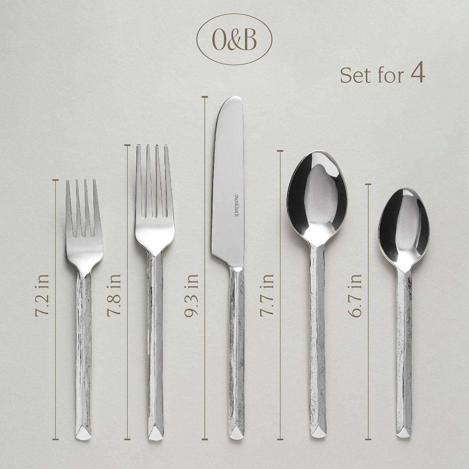 over&back 20pc Hand-Forged Flatware Cutlery Set - Comes with 4 Dinner Forks, 4 Salad Forks, 4 Dinner Knives, 4 Dinner Spoons, and 4 Teaspoons - Dishwasher-Safe - 18/8 Stainless Steel