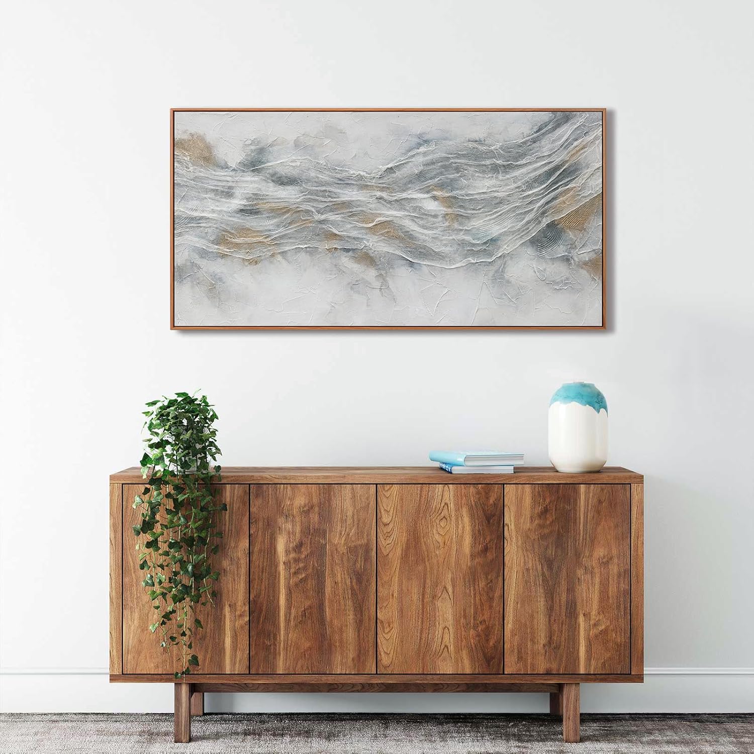 Abstract Wall Art Framed Ready To Hang Home Decor Artwork Simple Modern Art Pieces With Gold And Gray Textures Wall Art Prints Canvas Painting Small Size For Living Room Bedroom Office Decoration 20"X 40"