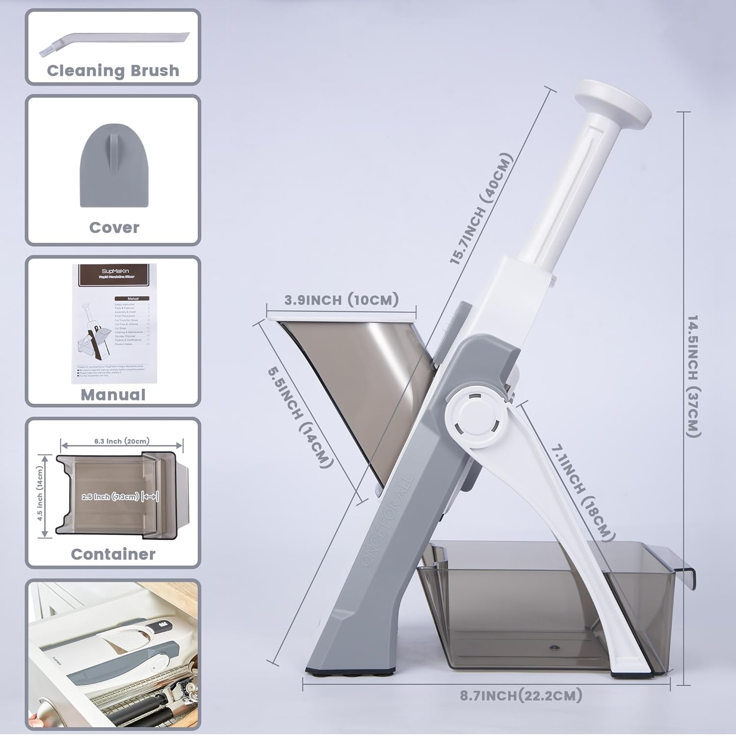 • SUPMAKIN‘S ASSURE : We believes in making life easier, more enjoyable in all that we do. We strive to bring you quality products. We ensure we bring you nothing but the best. In the unlikely event that you don’t love your mandoline slicer set, we will give you a replacement .