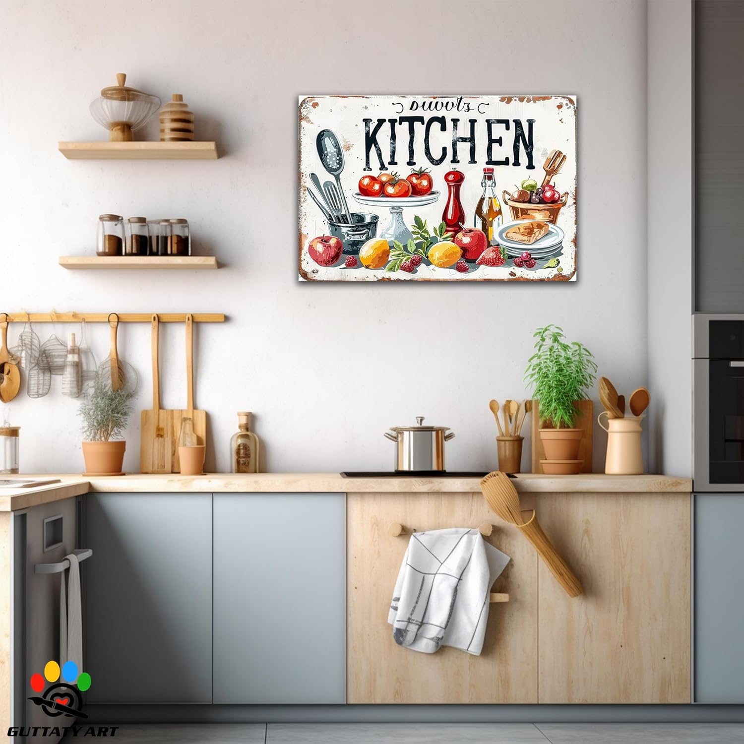 GUTTATY Farmhouse Wall Art Rustic Kitchen Decor, Ready to Hang Kitchen Wall Print Various Fruits and Kitchen Utensil,Vintage Posters Prints for Dinning Room Home Kitchen Restaurant Painting 28×40 Inch
