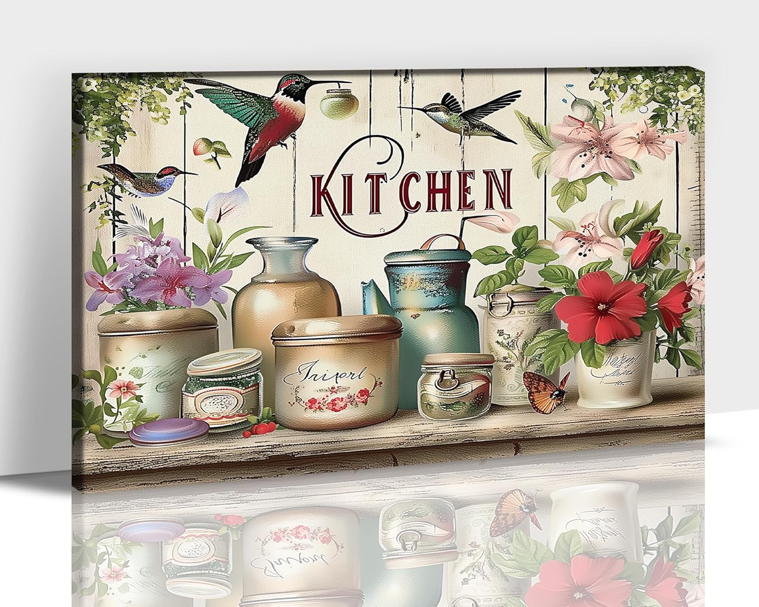 GUTTATY Farmhouse Wall Art Rustic Kitchen Decor, Ready to Hang Kitchen Canvas Print Flowers And Bird,Vintage Posters Prints for Dinning Room Home Kitchen Restaurant Painting 12×18 Inch