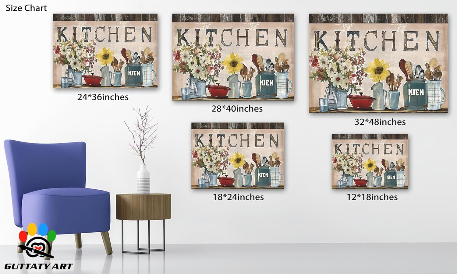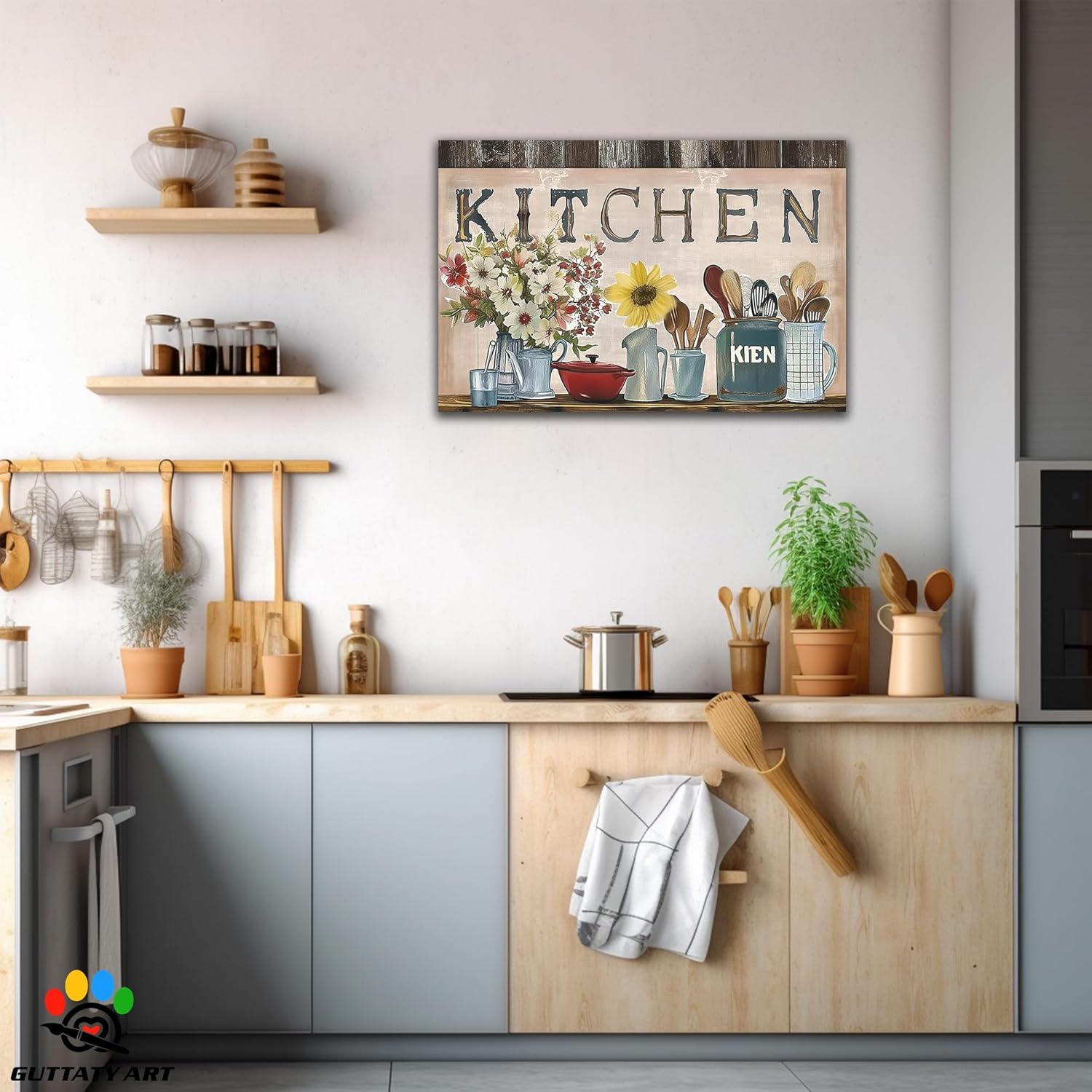 GUTTATY Farmhouse Wall Art Rustic Kitchen Decor, Ready to Hang Kitchen Canvas Print Sunflowers And Various Spoons,Retro Posters Prints for Dinning Room Home Kitchen Restaurant Painting 28×40 Inch