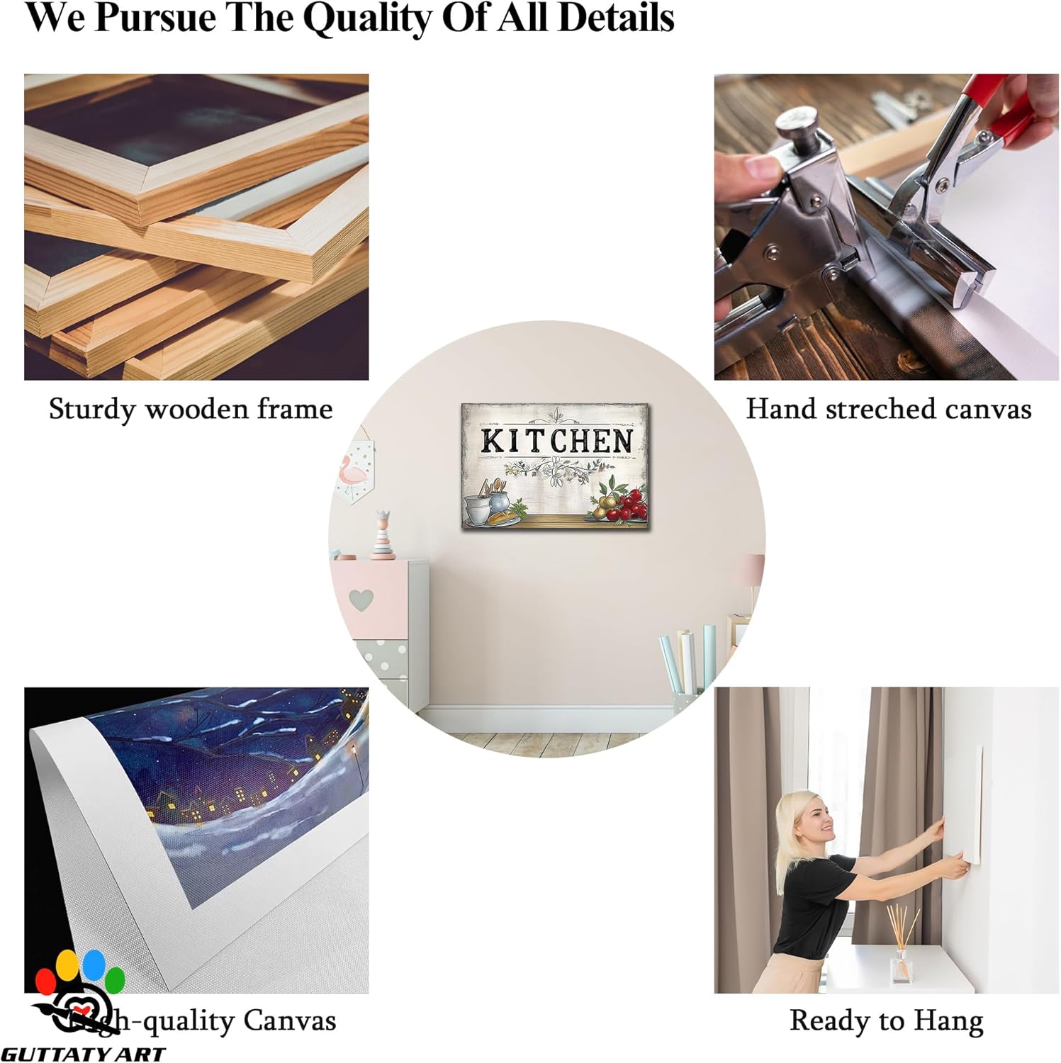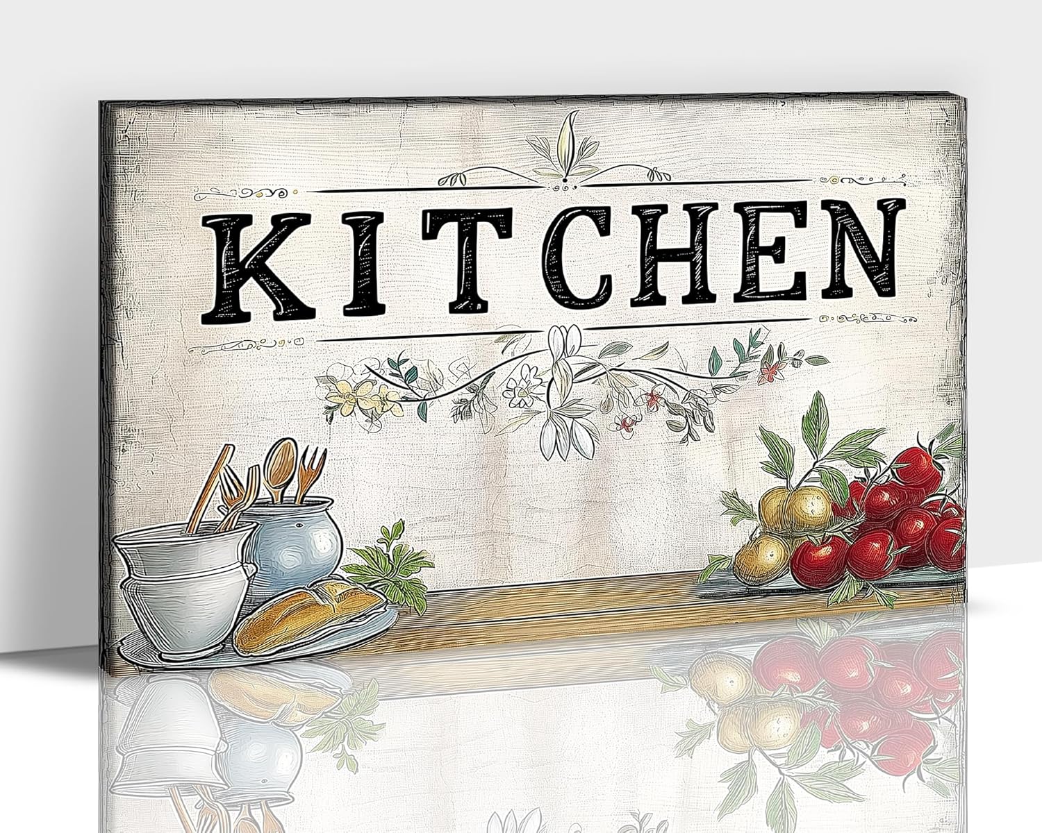 GUTTATY Farmhouse Wall Art Rustic Kitchen Decor, Ready to Hang Kitchen Canvas Print Spoon And Tomato Retro Posters Prints for Dinning Room Home Kitchen Restaurant Painting 32×48 Inch