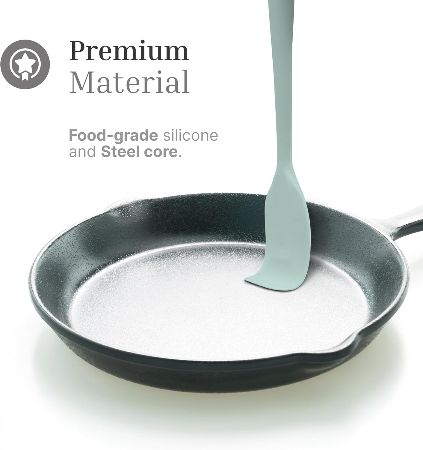 • 𝐏𝐫𝐞𝐦𝐢𝐮𝐦 𝐌𝐚𝐭𝐞𝐫𝐢𝐚𝐥: Our spatula set is crafted from food-grade silicone and it features steel core ensuring durability and sturdiness; this solid construction enhances longevity and stability, making these spatulas reliable tools for various culinary tasks