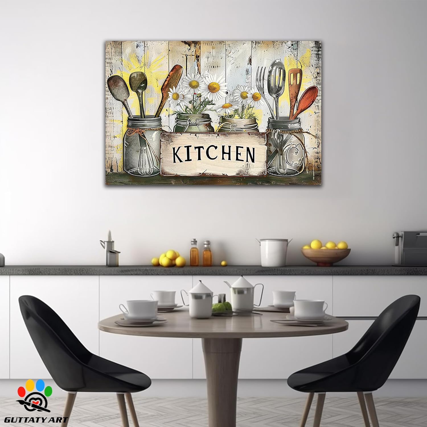 GUTTATY Kitchen Pictures Wall Decor, Farmhouse Wall Art Decor Graffiti Style Kitchen for Dinning Room Restaurant Decor, Mother's Day Gift for Grandma Mom Hanging Artwork 28×40 Inch