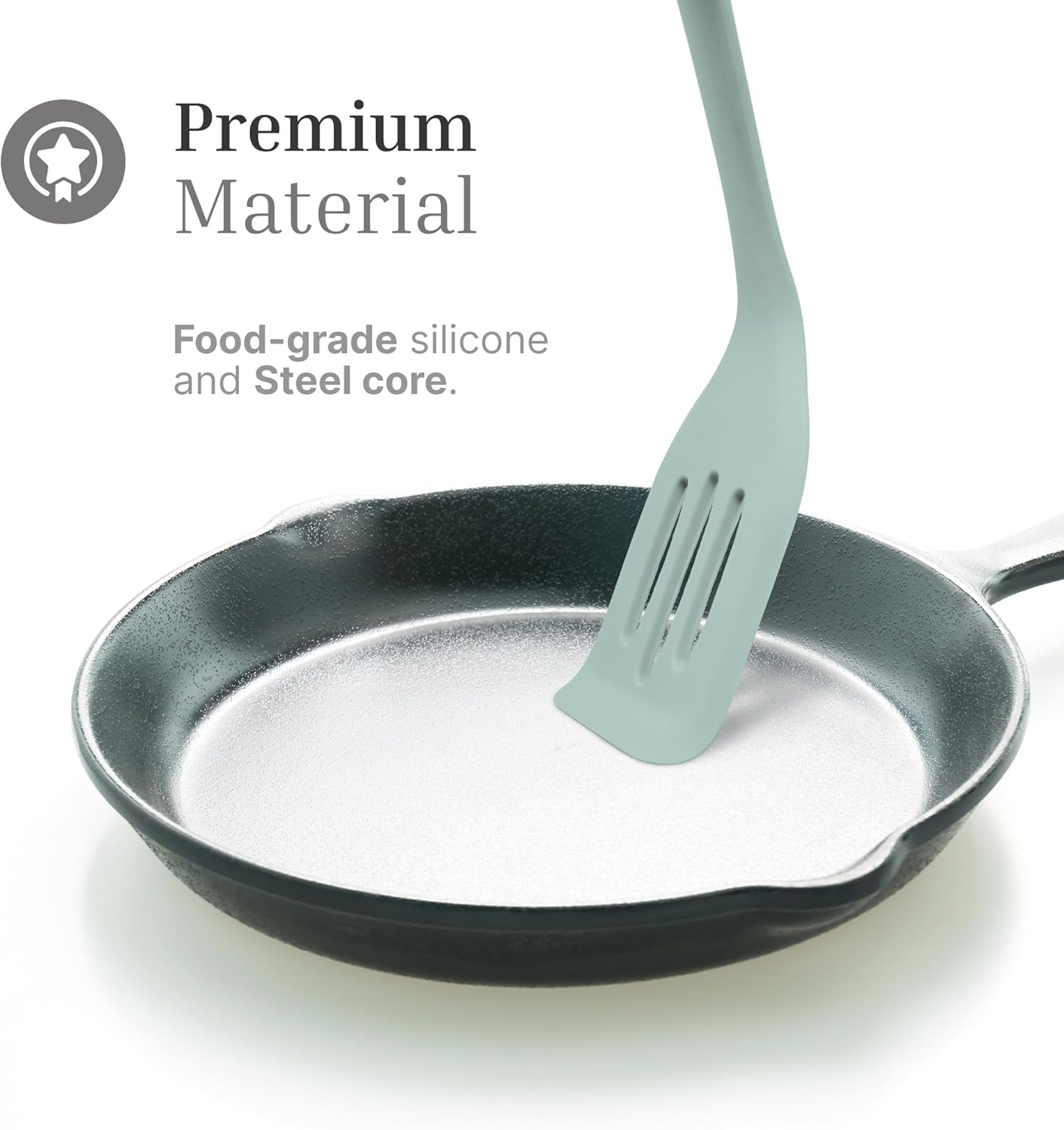 • Premium Material: Our turner spatula is crafted from food-grade silicone and it features steel core ensuring durability and sturdiness; this solid construction enhances longevity and stability, making these slotted spatulas reliable tools for various culinary tasks
