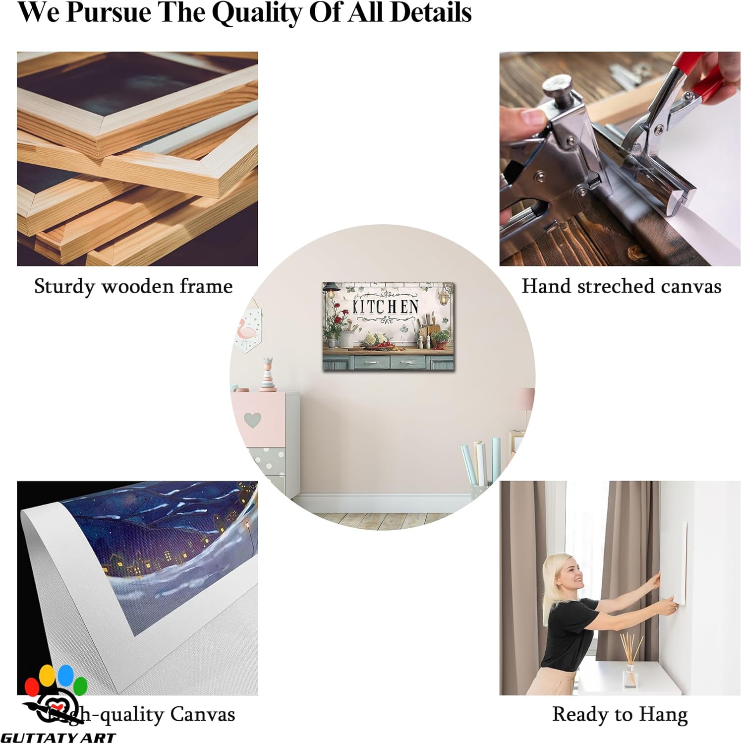 GUTTATY Kitchen Pictures Wall Decor, Farmhouse Wall Art Decor Flowers And Kitchen Utensils Painting for Dinning Room Restaurant Decor, Mother's Day Gift for Grandma Mom Hanging Artwork 12×18 Inch