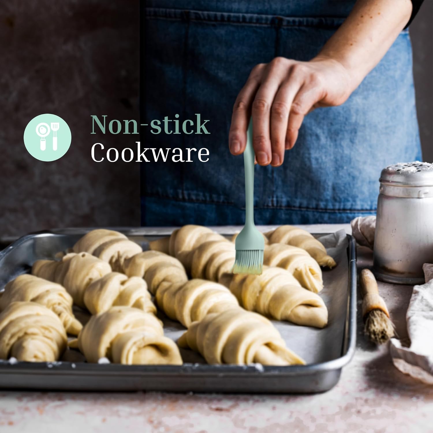 Silicone Pastry Brush Set – 2-Piece Set of Basting Brushes for Cuisine and BBQ – Kitchen Tools and Accessories with Comfortable Handles, Heat-Resistant Utensils for Cooking & Baking – Pastel Green
