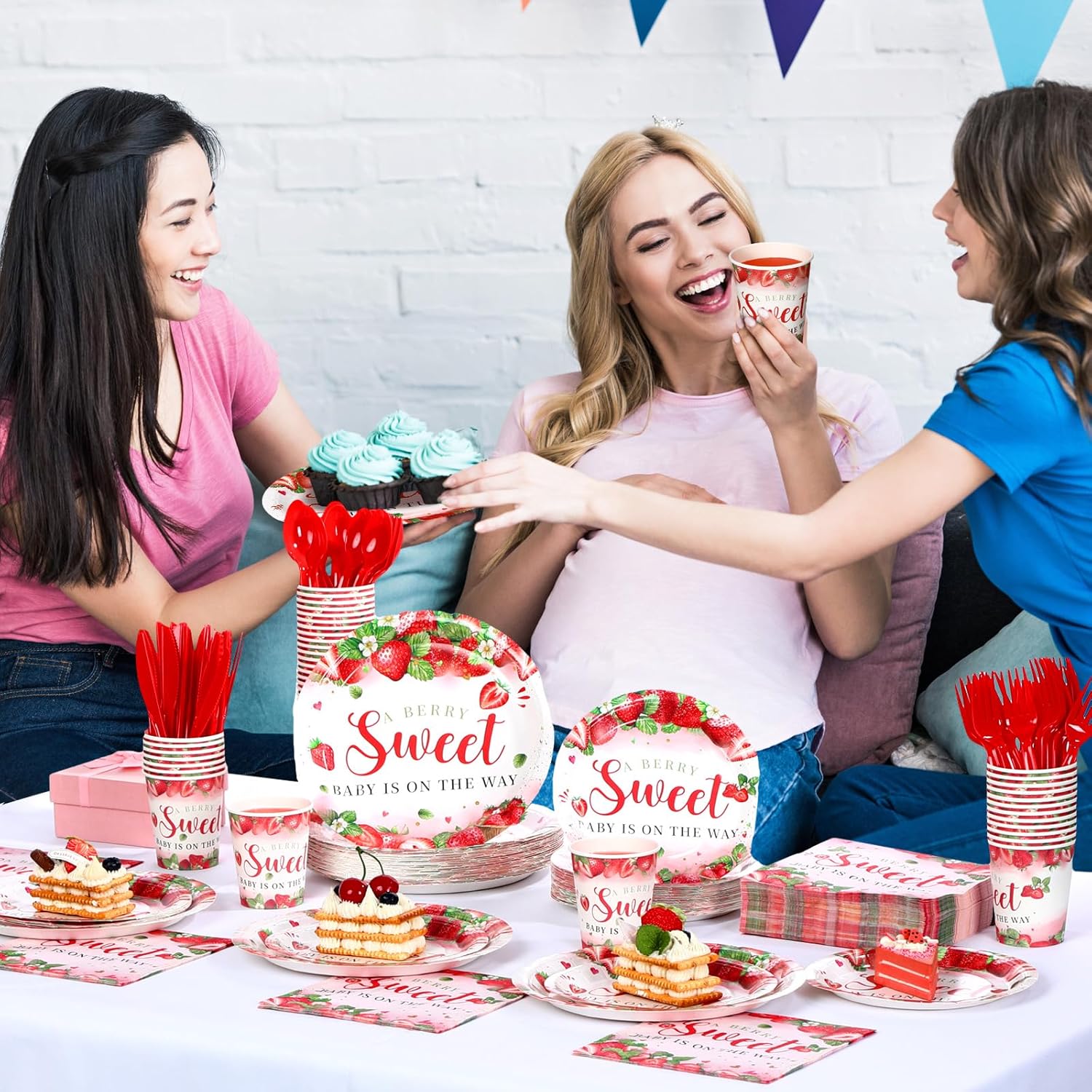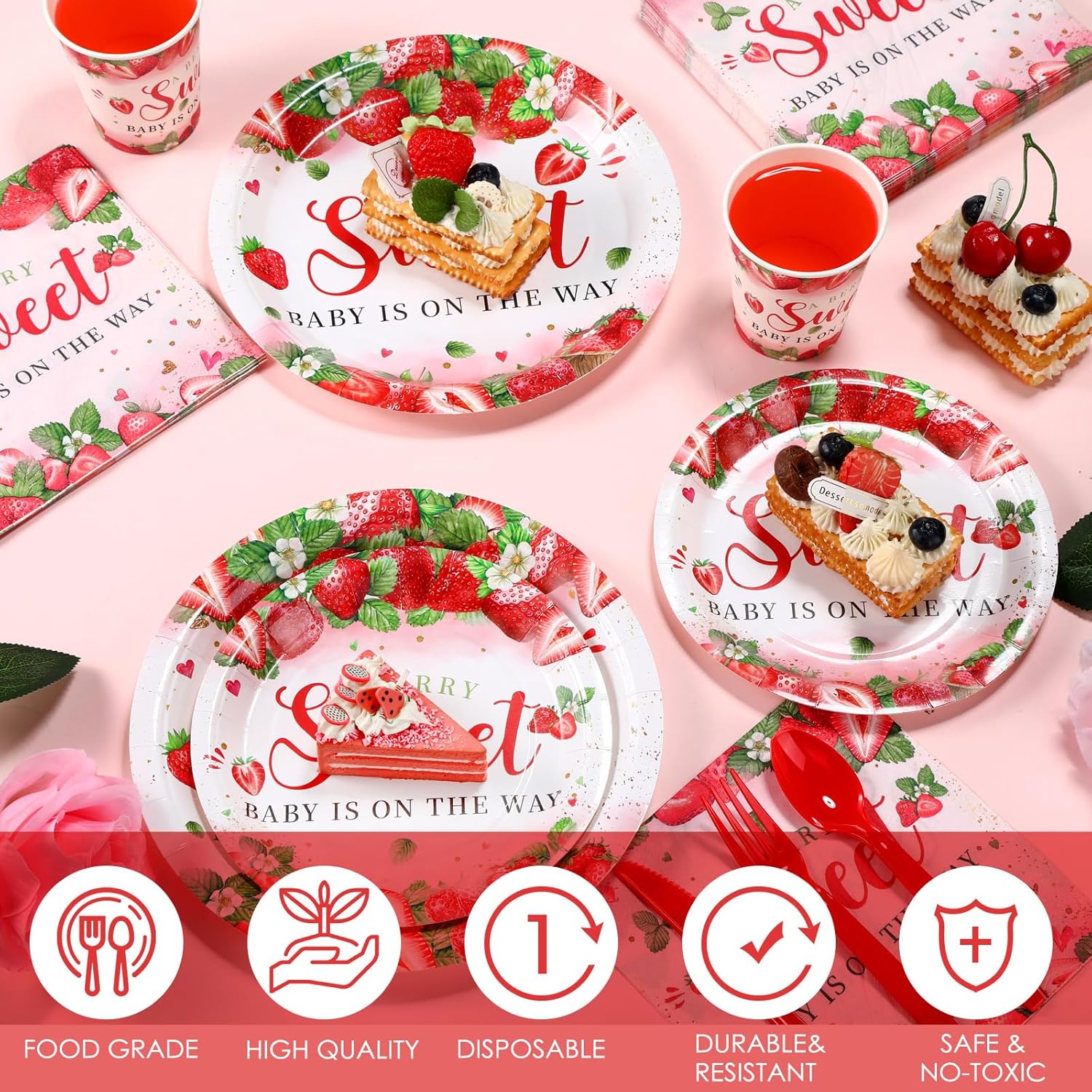 • Abundant Quantity for Baby Shower: there are 50 sets of strawberry birthday decorations in bulk, including 50 pieces of 9 inches paper plates, 50 pieces of 7 inches paper plates, 50 pieces of paper napkins, 50 pieces of paper cups, 50 pieces of plastic knives, 50 pieces of plastic forks, and 50 pieces of plastic spoons; With so many pieces, you can accommodate the needs of your guests and ensure a memorable baby shower experience