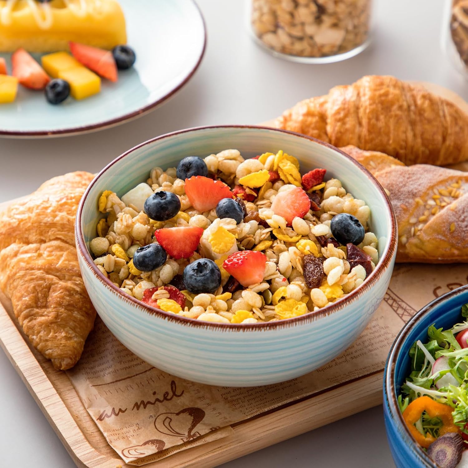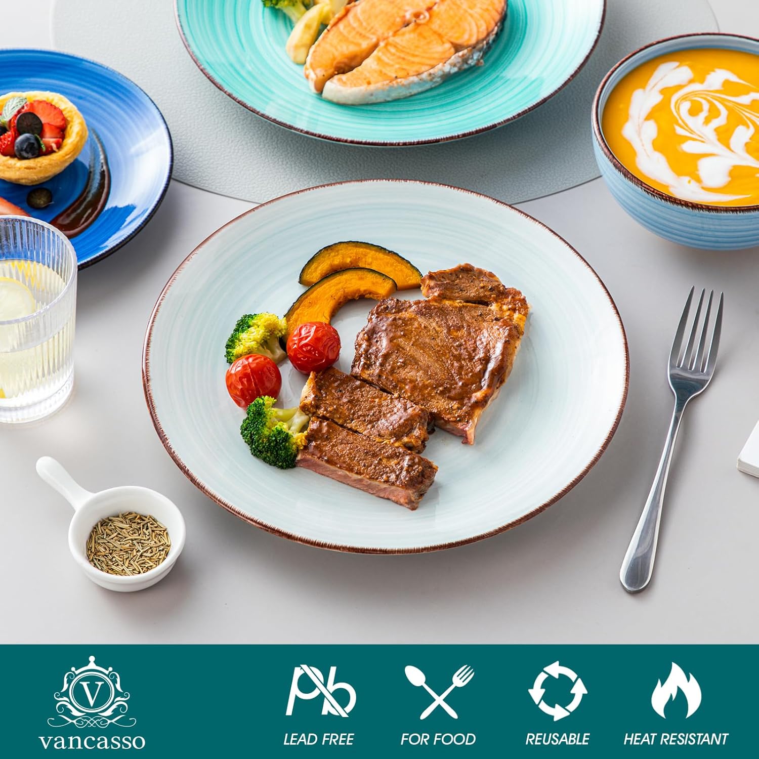 • 【Unique Spiral Design】The Bonita blue plate and bowl set features a captivating spiral pattern, adding an artistic touch to your table. This dishes set for 4 stands out with its eye-catching design and vibrant colors.