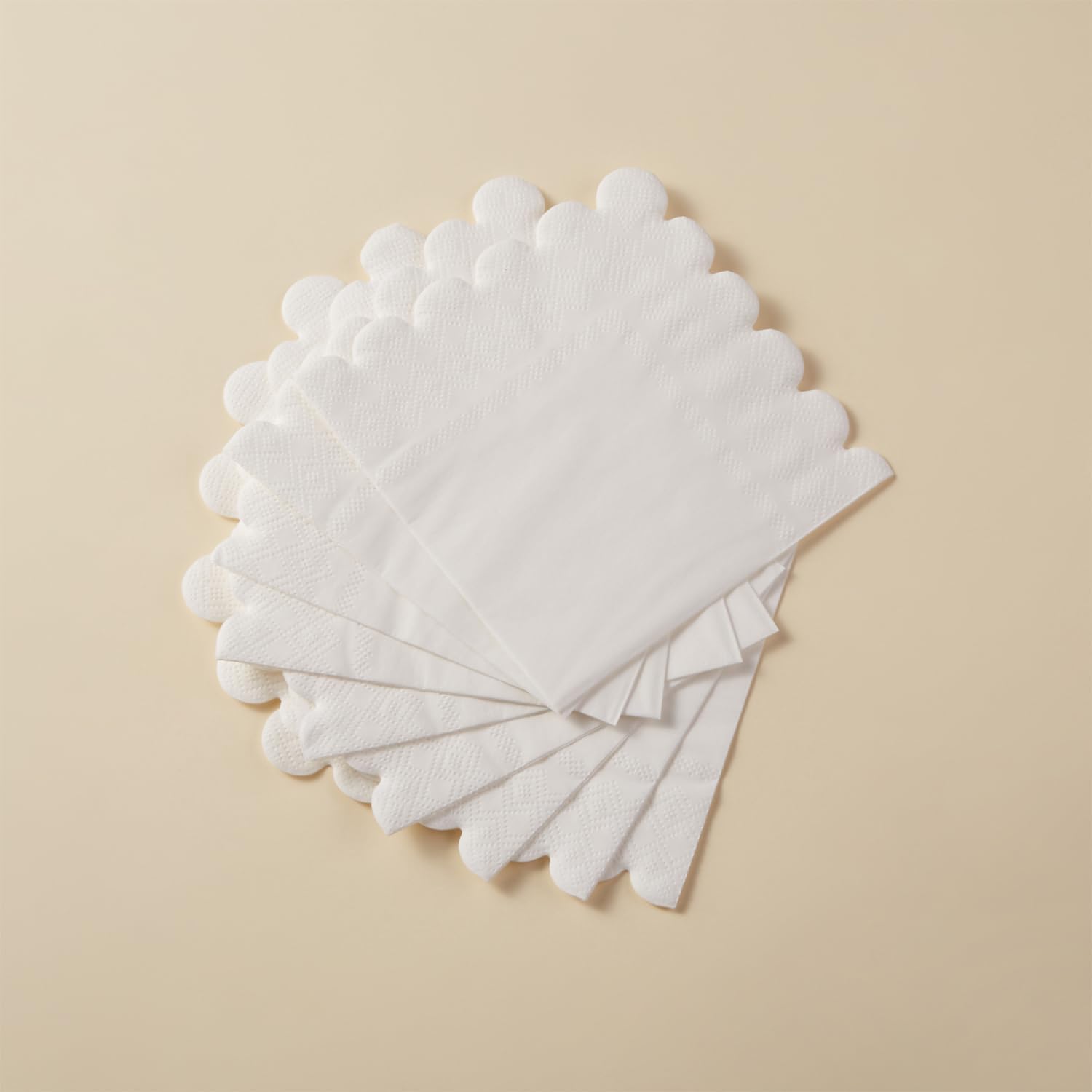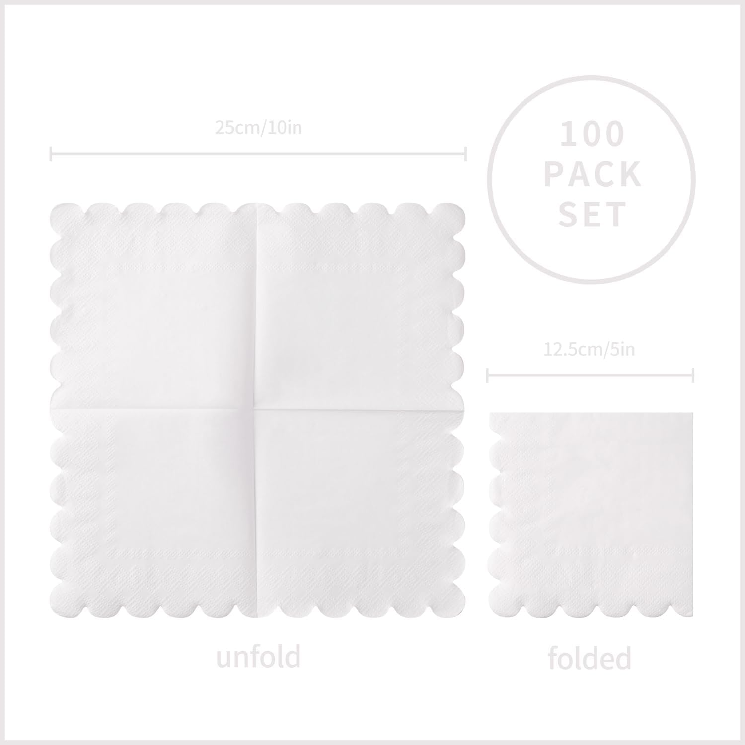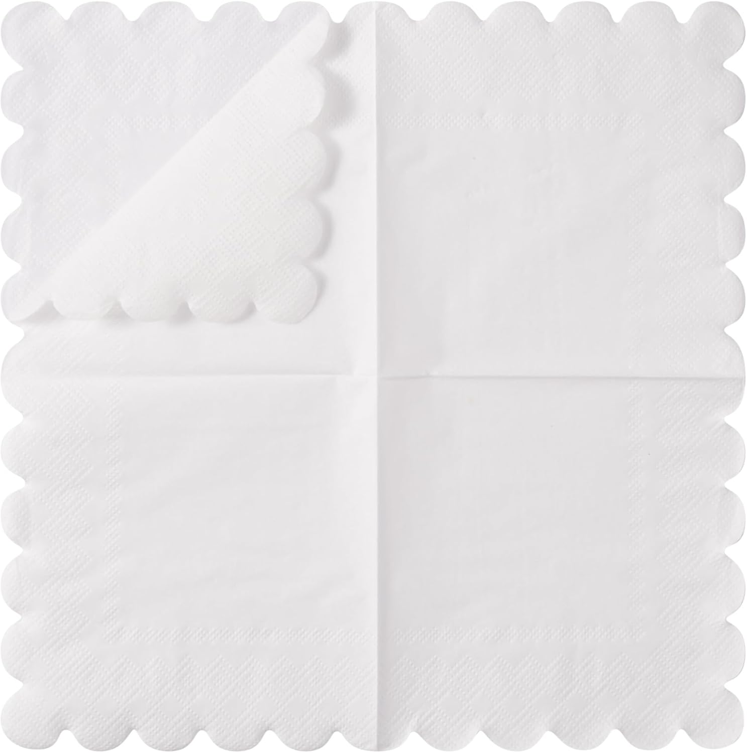 100 Pack Cocktail Napkin 2-Ply Scalloped Edged Dessert Napkins Folded 5 x 5 Inches Disposable Napkins for Dinner Wedding Birthday Party Bridal Anniversary Reception Event (White)