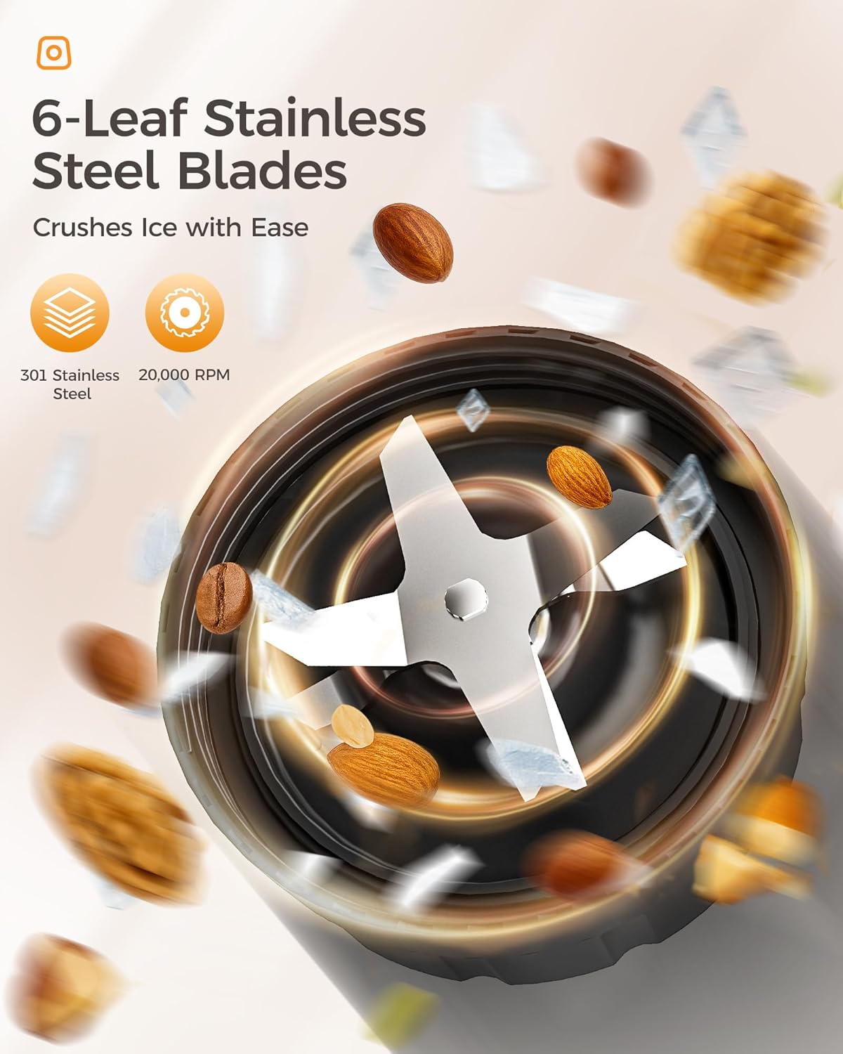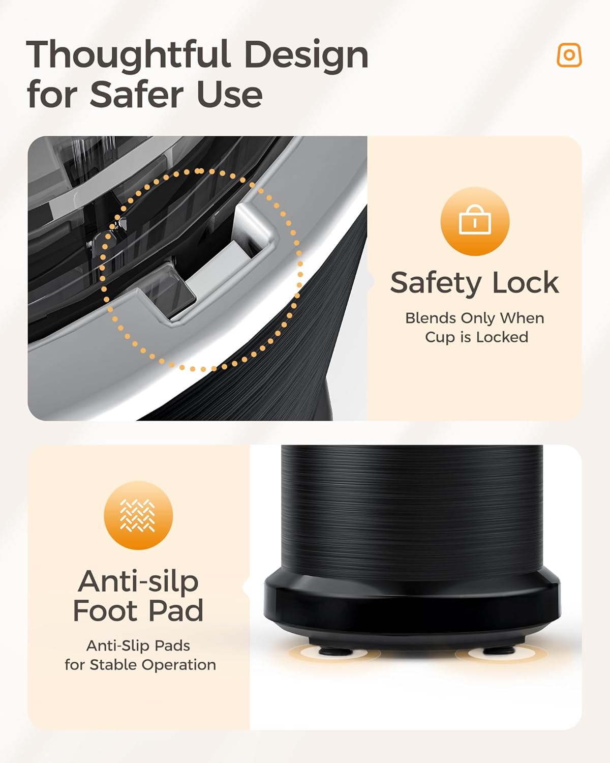• Compact Design, User-Friendly Operation – This personal blender for shakes and smoothies fits perfectly on any countertop. Simply add fruits, veggies, milk, and ice to the blender cup, twist it onto the base, and blend with ease. So simple, anyone can master it in seconds!