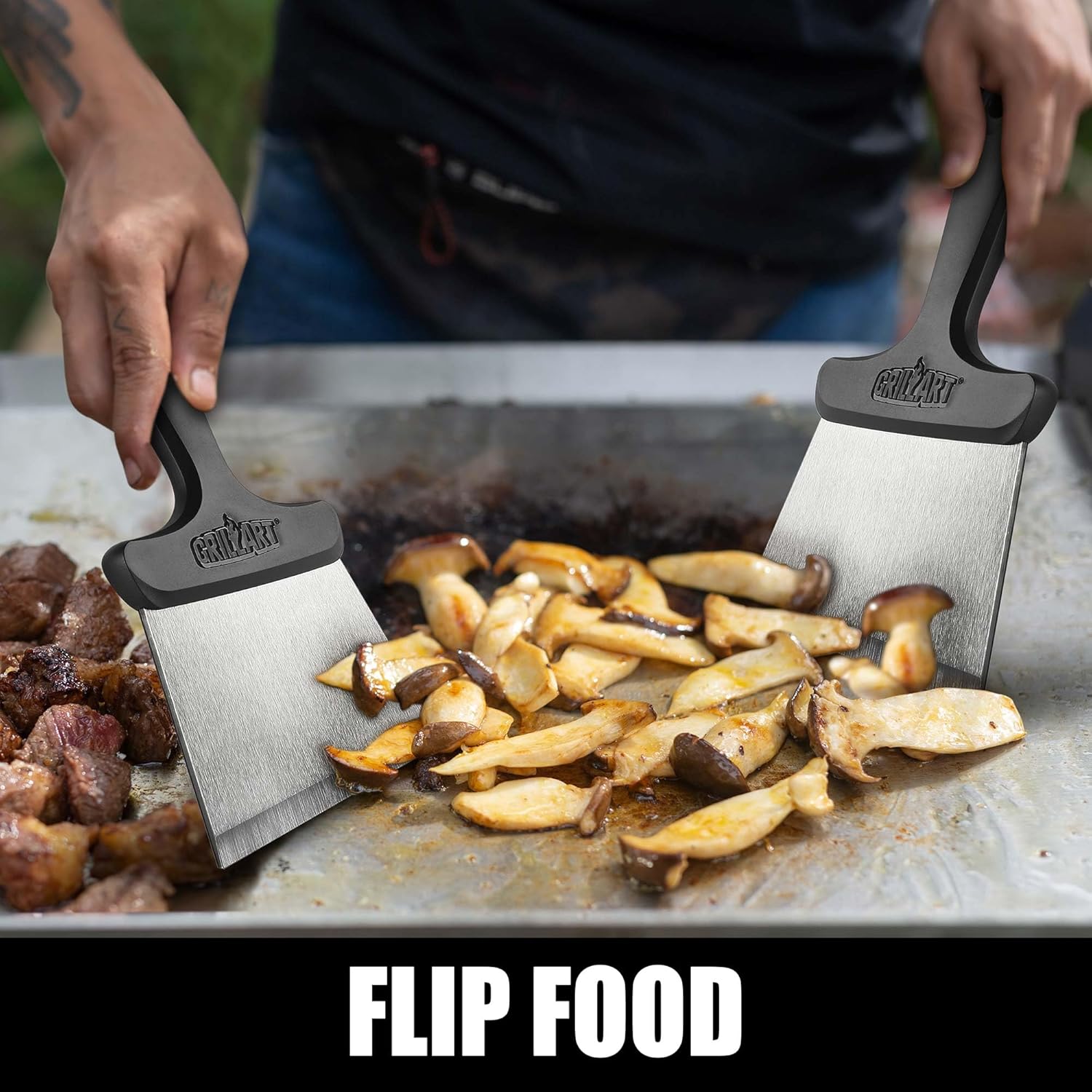 • 3-in-1 Grill Tool】Not just a scraper! Use it to clean griddle/grates, chop foods while cooking, or flip burgers and veggies—all with one versatile tool.