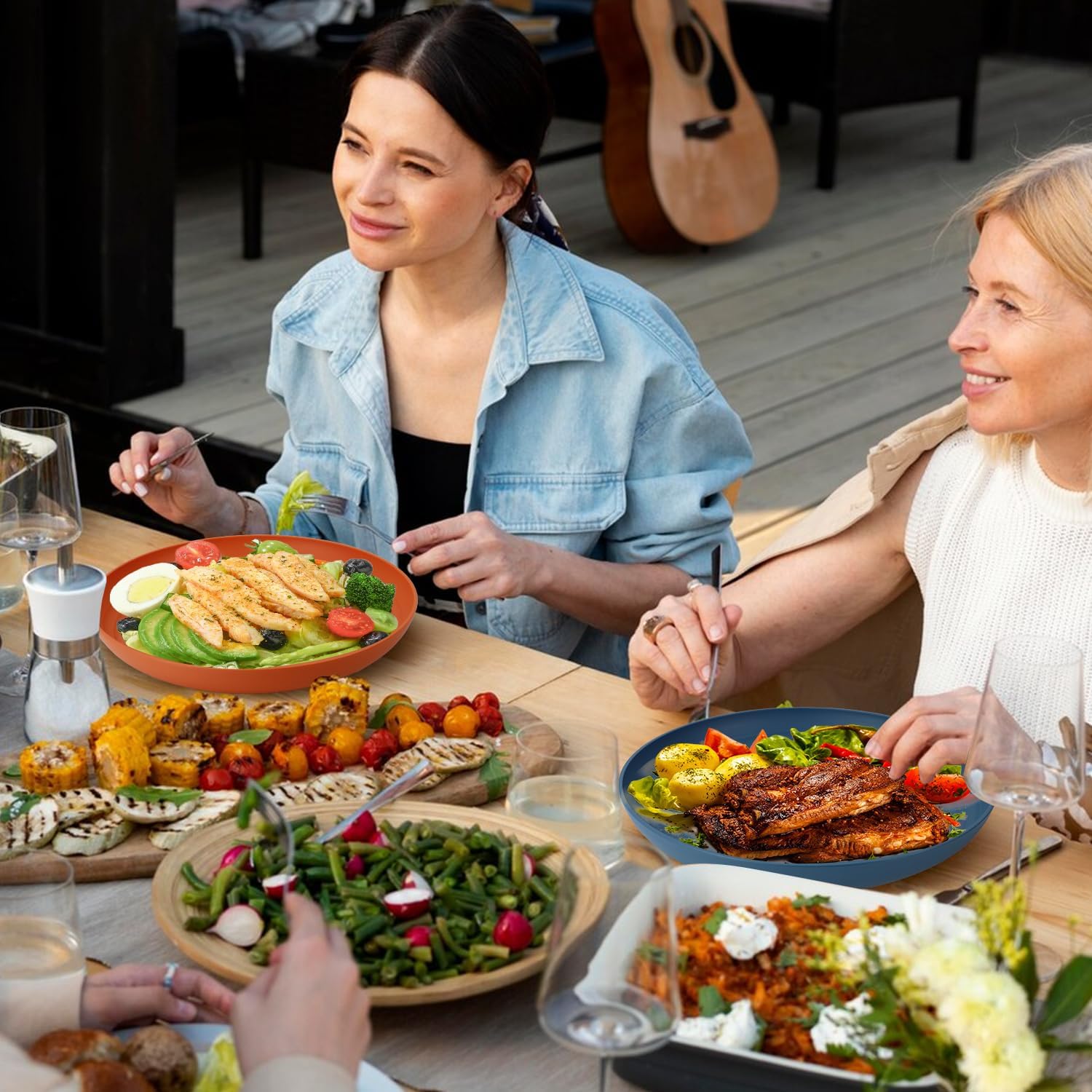 • 【Wheat Straw Material】 The dinner plates are made of wheat straw fiber and food-grade PP which are BPA free. The material won't affect the taste or aroma of your food. Good alternative to plastic plates. The color includes dark blue, green, yellow and orange.