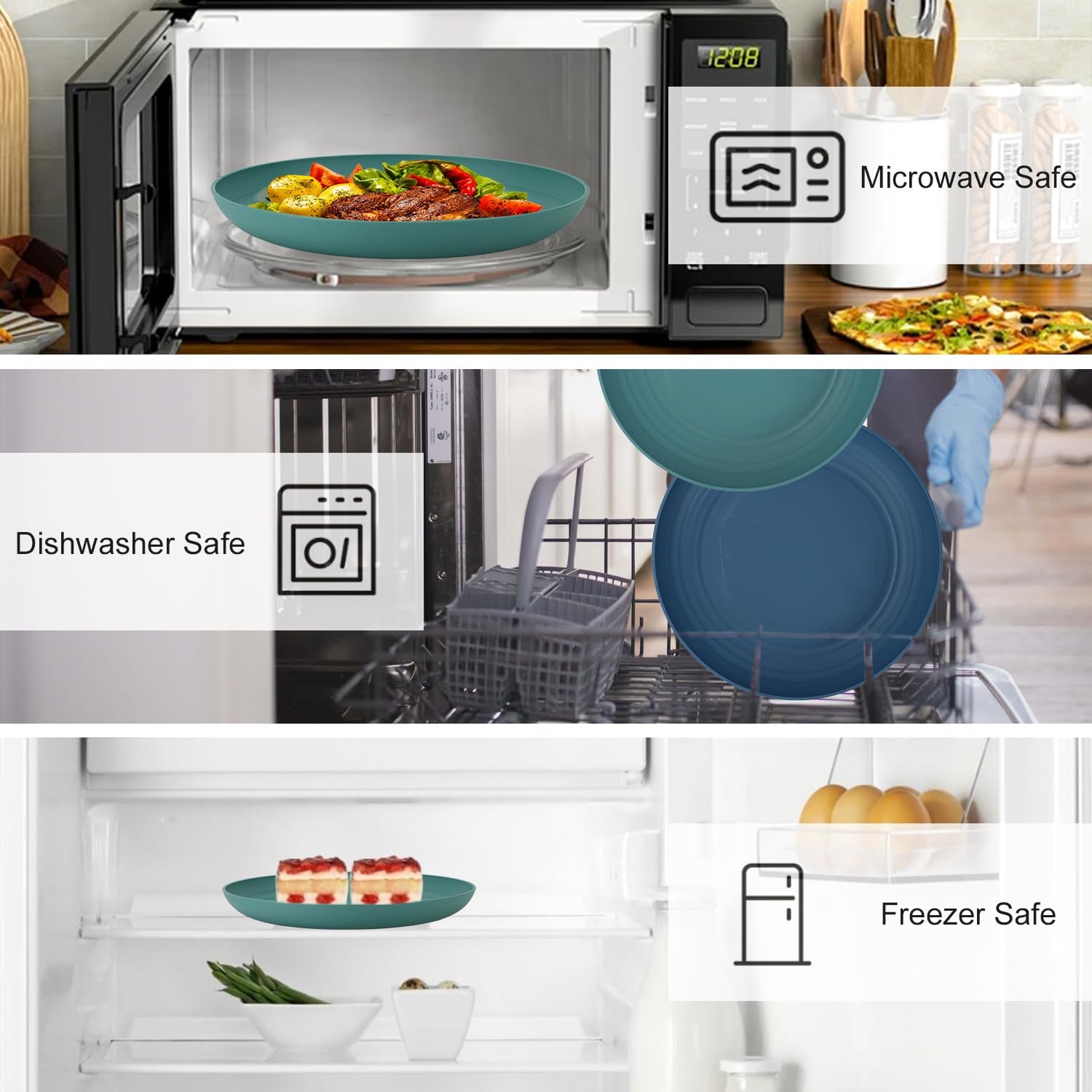 11 Inch Large Wheat Straw Plates 8 Pieces, Unbreakable Dinner Plates Reusable Plastic Plates Alternatives, Microwave Safe Plates for Kitchen, Plates Set of 8 (Multicolor)