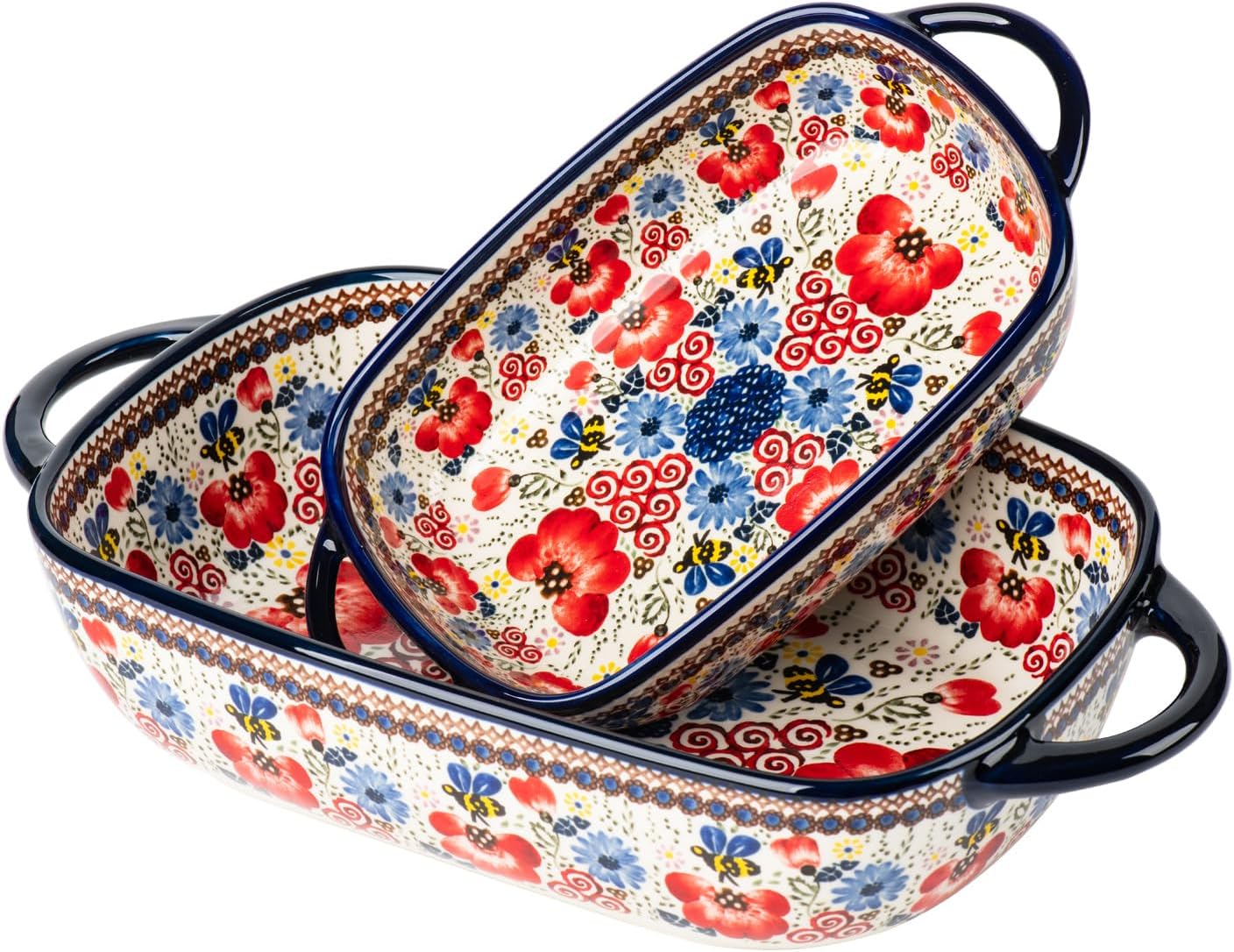 Baking Dish Ceramic Baking Pan Blue Casserole Dish Porcelain rectangular Baking Set 2pcs Bakeware Sets Lasagna Pan Baking Dishes for oven(Honey Flower)