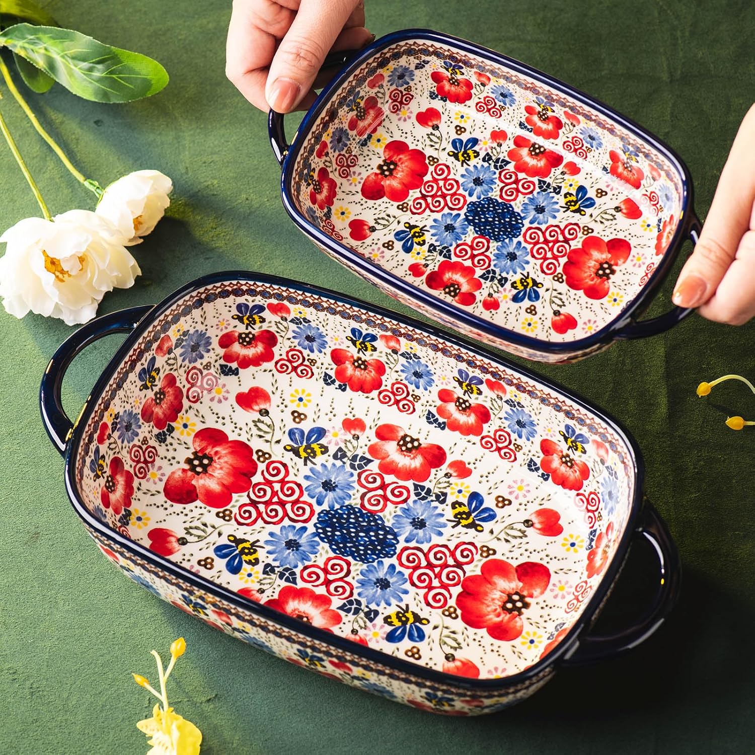 • 【Hand-Painted Floral Pattern】. The bakeware set features unique colorful design for enjoyable baking time. Remarkable display can be a charming decoration in your dining table and kitchen.
