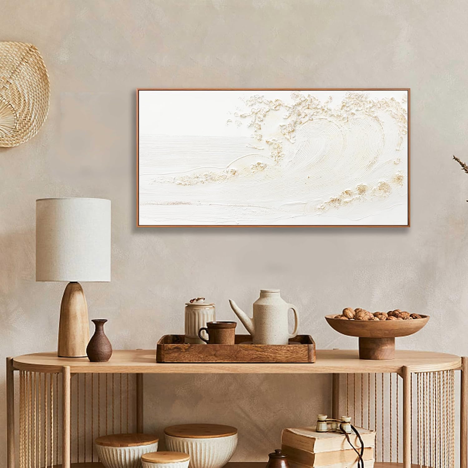 Wall Art Small Size Framed Home Artwork Decor Hand Painted White wave with golden embellishments Modern Canvas Painting For Living Room Decor For Bedroom Office Wall Decor 20"X 40"