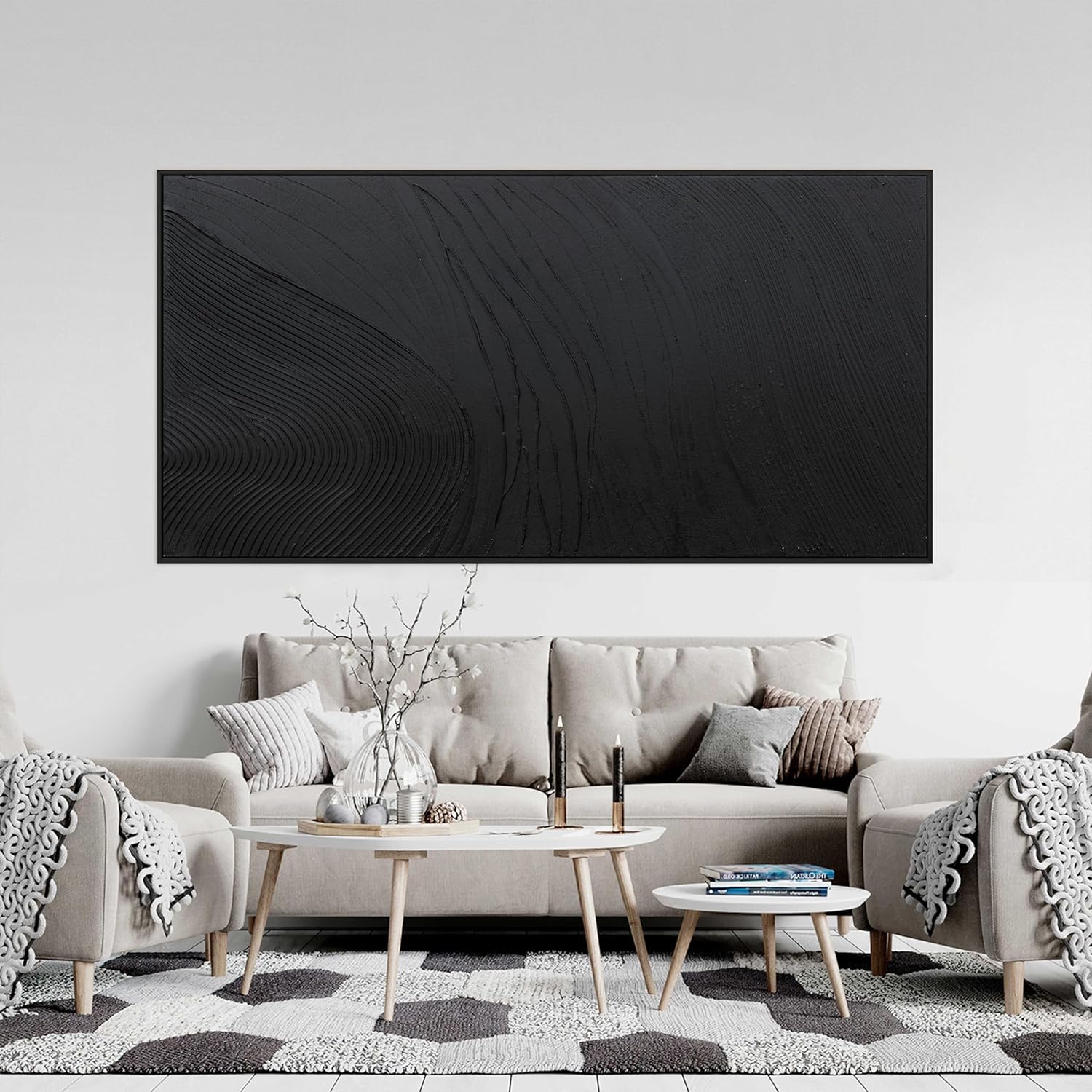 Large Modern Wall Art for Living Room Abstract Canvas Wall Art Decor Framed Large Black Wall Art Canvas Art Wall Decor Hand Painted Black Texture Artwork for Walls Bedroom Office Wall Decor 29"x58"