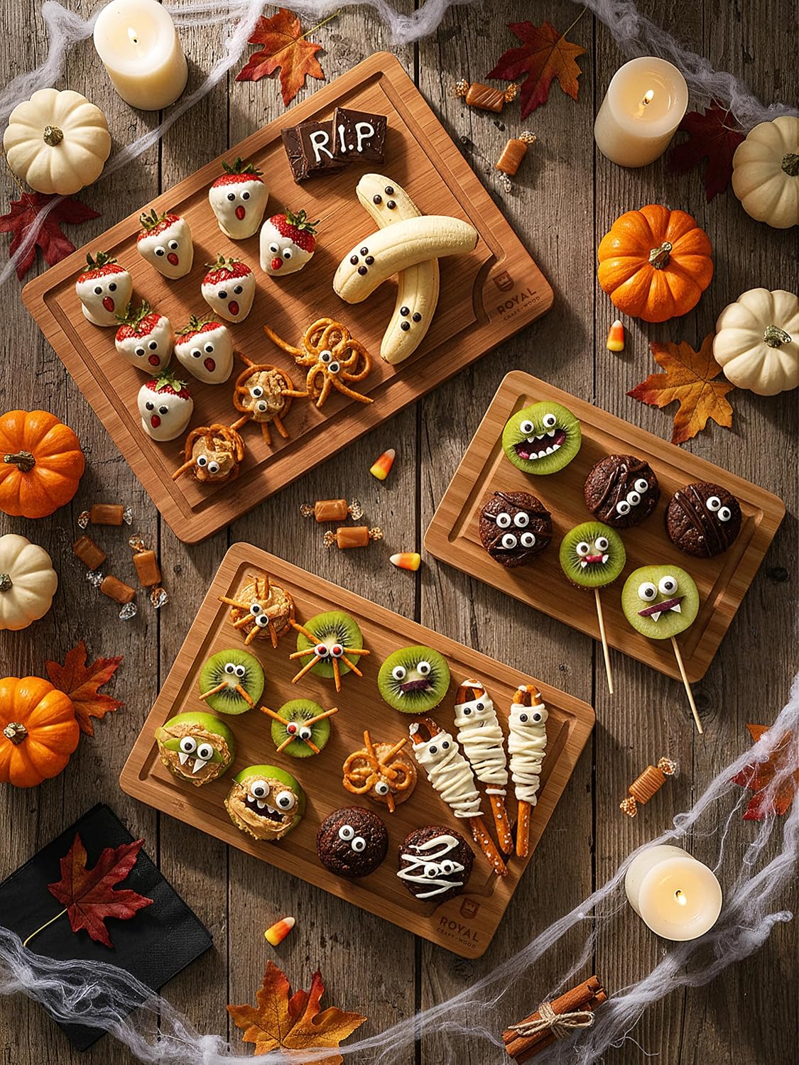 ROYAL CRAFT WOOD Wooden Cutting Boards for Kitchen Meal Prep & Serving - Bamboo Wood Serving Board Set with Deep Juice Groove Side Handles - Charcuterie & Chopping Butcher Block for Meat (3 Pcs)