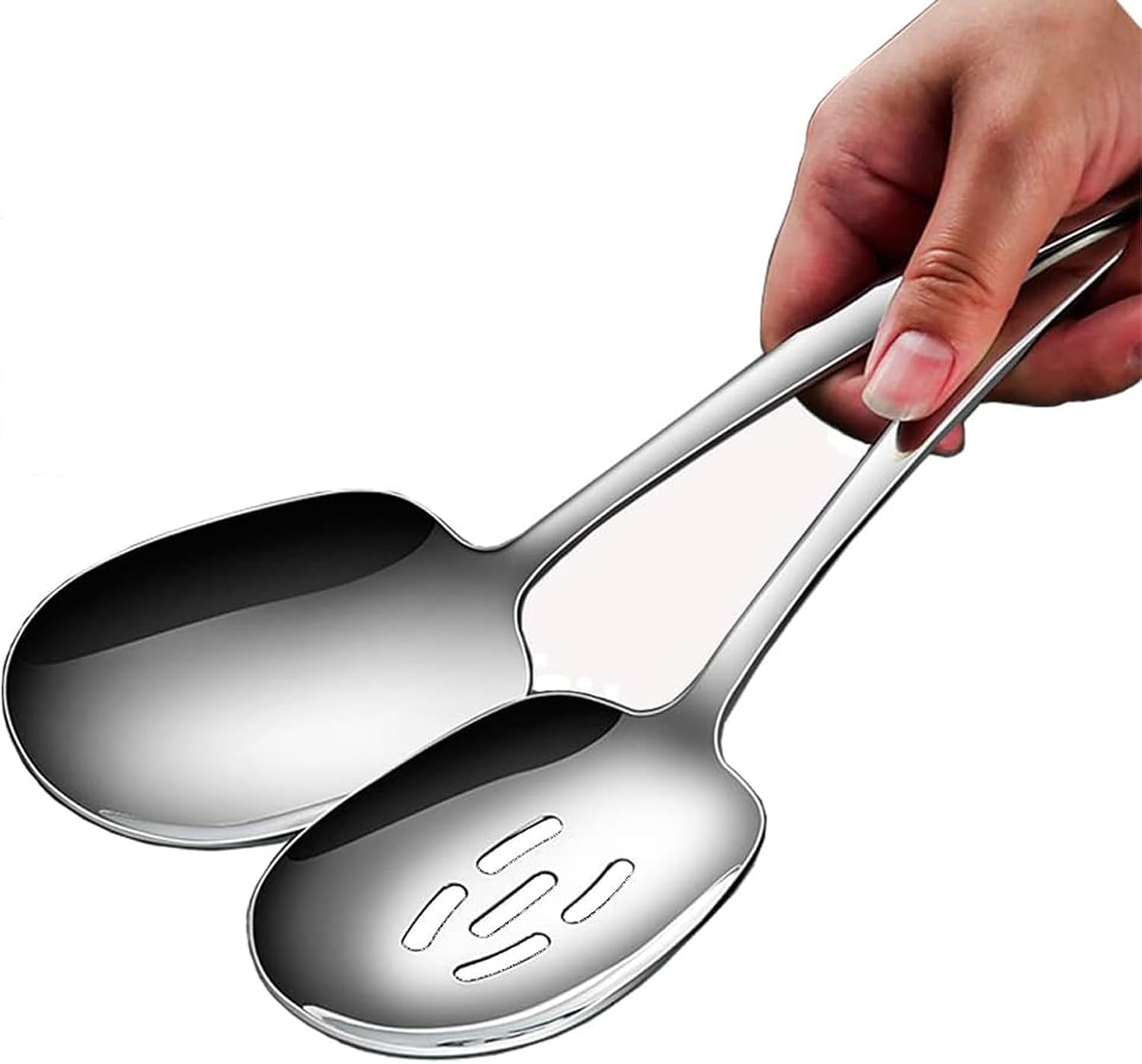 X-Large Serving Spoons Set, Stainless Steel Slotted Spoon and Serving Spoon,18/8 Stainless Steel Buffet Banquet Spoons, 9.8-Inch Dishwasher Safe