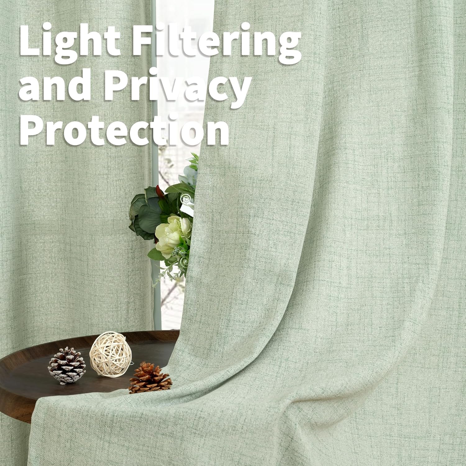 • Package: The package includes set of 2 sage linen curtain panels. Each linen textured curtain measure 42 inch wide and 40 inch length. Each light filter curtain has 6 vintage bronze grommets with 1.6-inch inner diameter, fit well with most rods. Easy to hang, and slide smoothly.