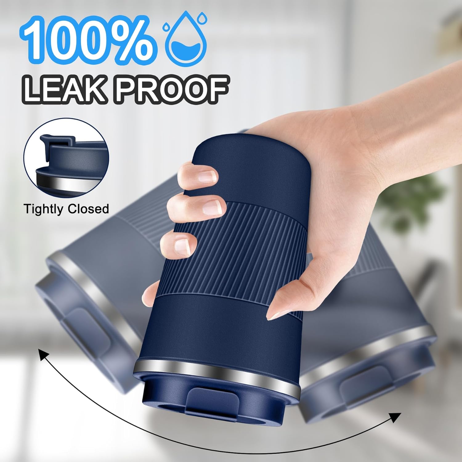 • 【Easy To Drink with One Hand】The insulated coffee mug features an eco-friendly flip-top opening with a leak-proof top, which can be easily opened and closed with one hand while driving, making it the most reliable choice for your commute or travel. The body of the cup features a twill silicone sleeve, allowing you to hold and use it comfortably. The non-slip pad on the bottom prevents the cup from slipping and tipping over.
