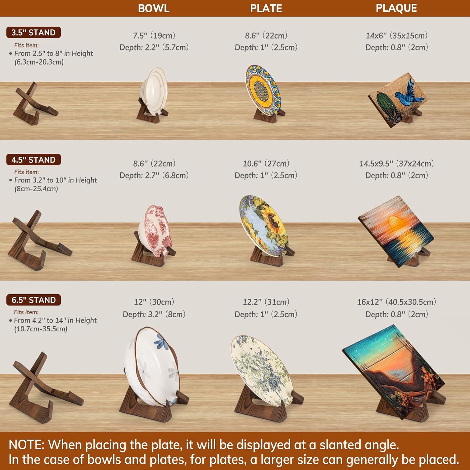 Bowl Stands for Display, 3 Pack 3.5 Inch Plate Holder, Wooden Easel Frame Holder, Display Stand for Large Deep Platters and Dishes, 3.5" H x 4.8" W x 4" D (For Bowls under 2.5" in Depth)