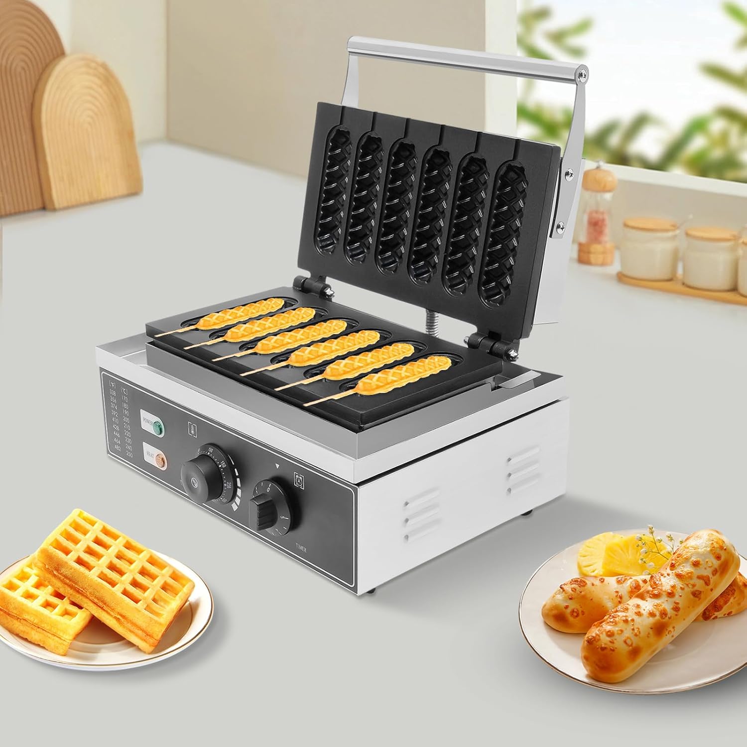6pcs Hot Dog Waffle Machine,Commercial Nonstick Hot Dog Machine French Muffin Irons Stainless Steel Hot Dog Corn Maker and Waffle Stick Maker 50-300℃ Temp Control Kitchen Equipment