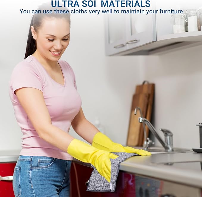 • Material Upgrading: Our wire dishwashing rag Made from 80% chemical fiber materialsand 61% polyamide of a premium microfiber with a highly absorbent, streak-free and lint-free features. It has the ability to pick up and lock dirt, dust, moisture into the fibers, cleaning and drying the applied surface. Use a wire rag on both sides to clean stubborn stains