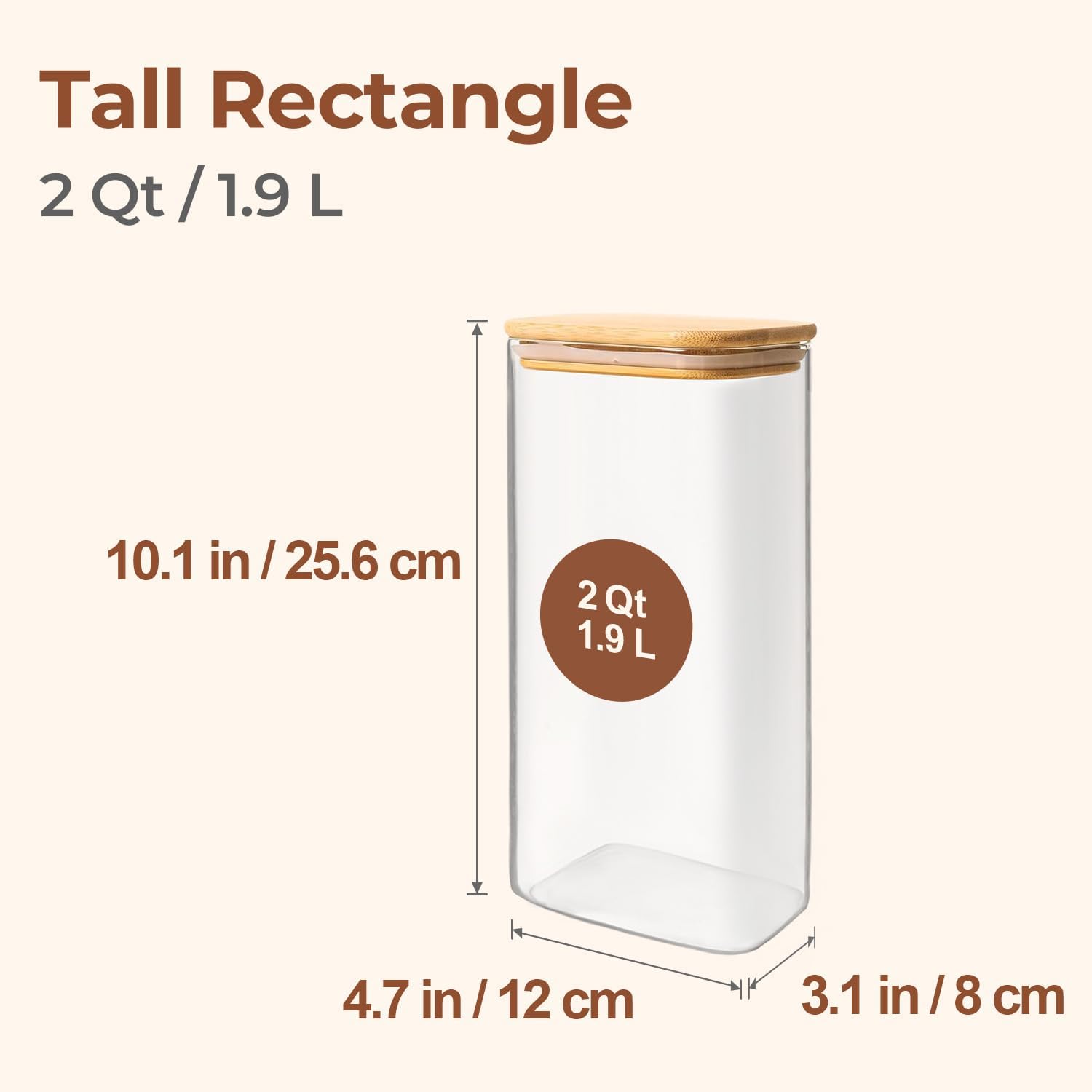 ComSaf 2 Qt Rectangle Glass Storage Containers with Lids, Glass Jars with Bamboo Lids, Clear Food Jar, Square Canister Set of 3, Pantry Organizers and Storage for Flour Pasta Coffee Bean