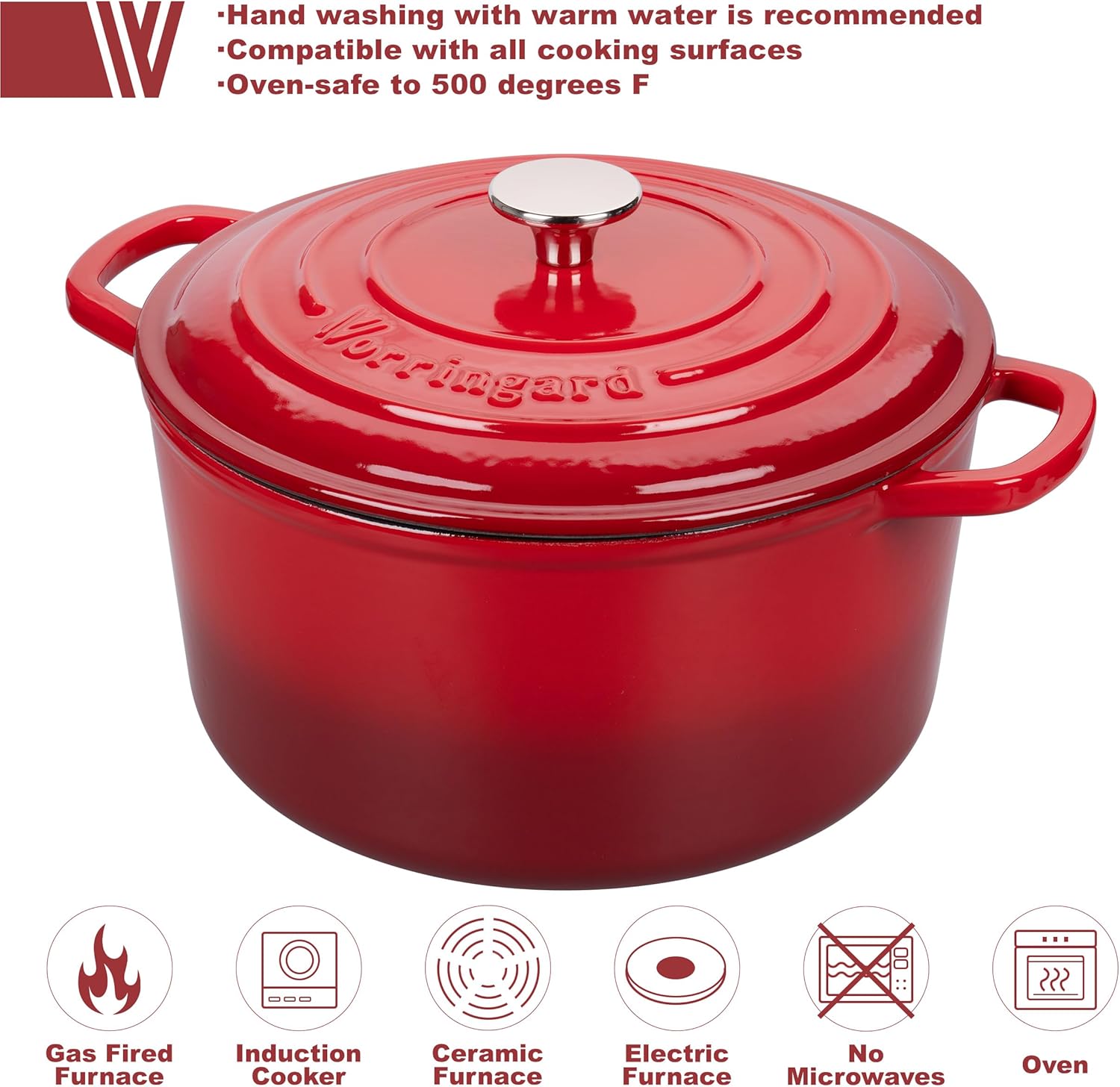 • VERSATILE USE: The Vorringard enameled dutch oven Can be used for slow-cooking, simmering, braising, baking, or roasting a wide range of recipes. Perfect for cooking, serving, moves from refrigerator to stove top or oven to the table