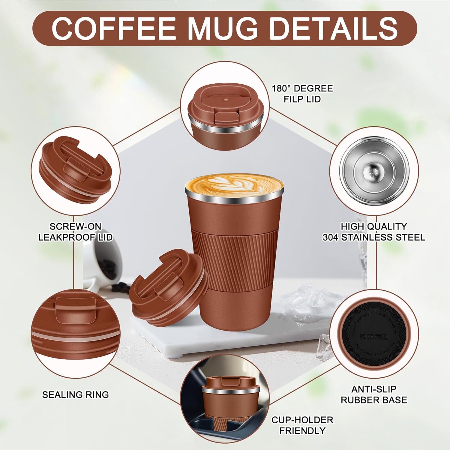 Coffee Travel Mug 12oz Insulated Coffee Mug with Lid Portable Spill-Proof Coffee Travel Mug No Handle Reusable Stainless Steel Mug Keeps Cold and Hot Suitable for Car, Daily, Travel and Gifts