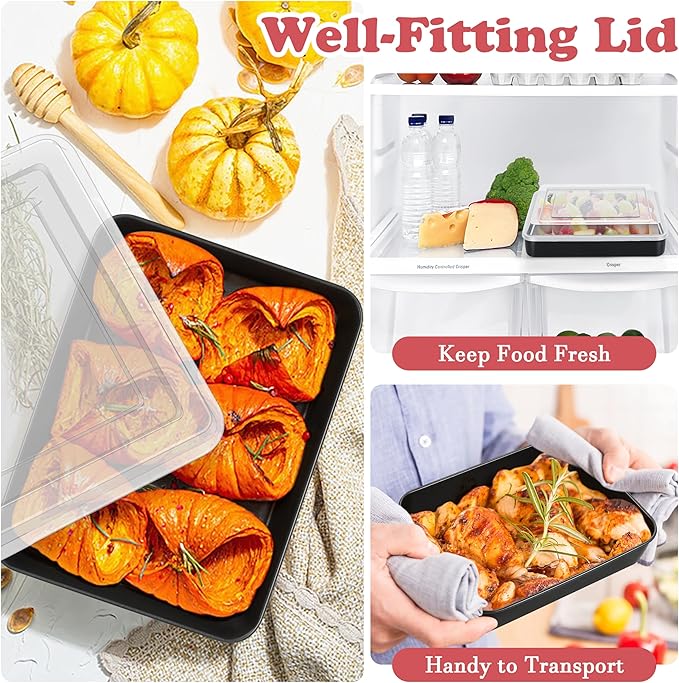 • WELL-BUILT & BAKING EVENLY- Well-rolled edge with good thickness comfortable to hold, Black nonstick coating with flat-bottom design helps with even heat distribution to avoid over brown your cake, Work well for baking small brownies, lasagna, casserole or meatloaf, Idea gift for Housewarming/Thanksgiving/Christmas