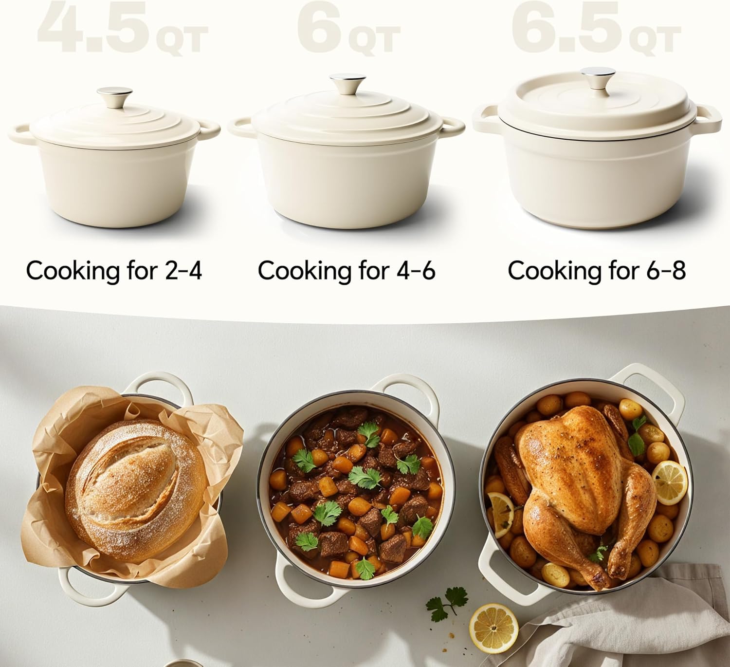 4.5 Quart Dutch Oven Pot with Lid, Non Stick Enameled Cast Iron Dutch Oven for Bread Baking, Heavy-Duty, Oven Safe Ceramic Cookware Up to 500°F for Baking, Braising, Stews, Roasting, Beige