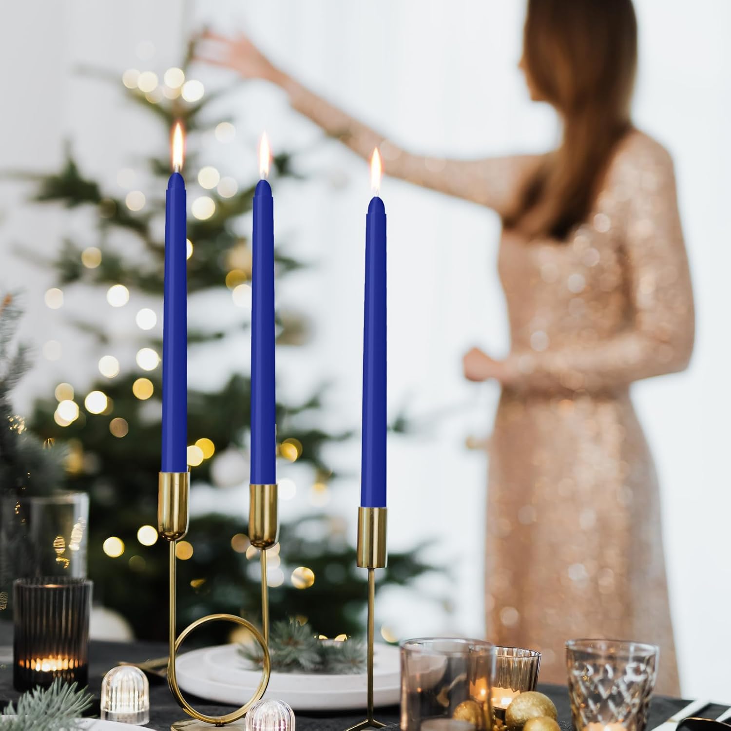 12 Pack Blue Taper Candles - Taper Candles 10 Inch Dripless, Smokeless & Unscented - 8 Hours Long Burning - Ideal for Weddings, Dinner Parties, and Home Decor