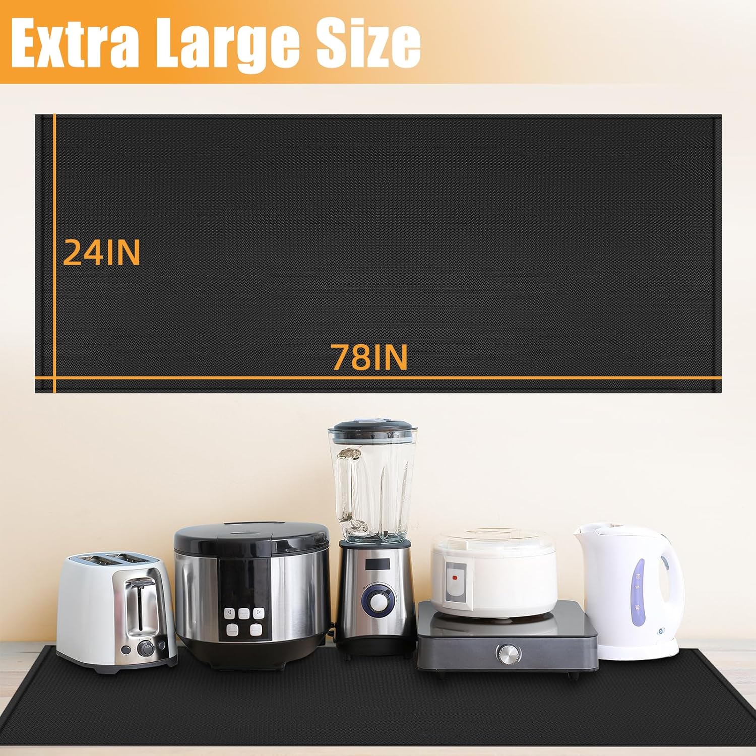 • 【Extra Large Silicone Mat】This heat-resistant countertop protector measures 24x78in to cover a large countertop area, perfect for kitchen countertops with many and larger kitchen appliances.