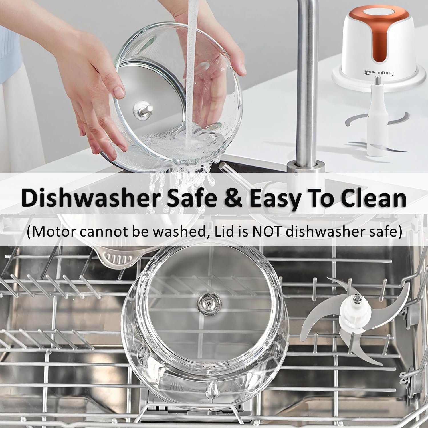 • 【Hassle Free Cleaning】The vegetable chopper mixer basically comprises a glass bowl, bowl lid, chopping blade and motor, all parts are removal for easy cleaning. **Only the glass bowl and chopping blade is dishwasher-safe. Our meat grinder processor is mainly made from BAP-free materials, perfect for family use and ideal for making baby food.