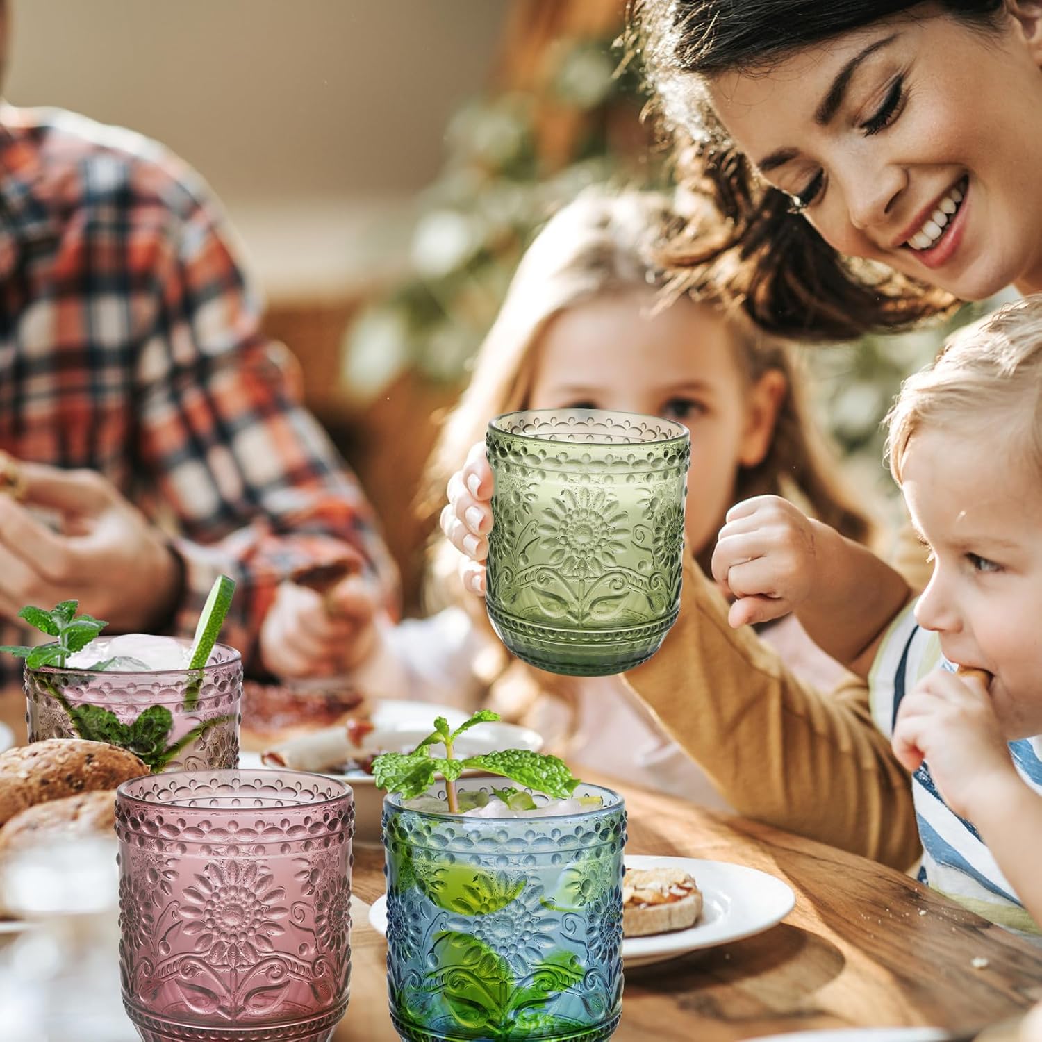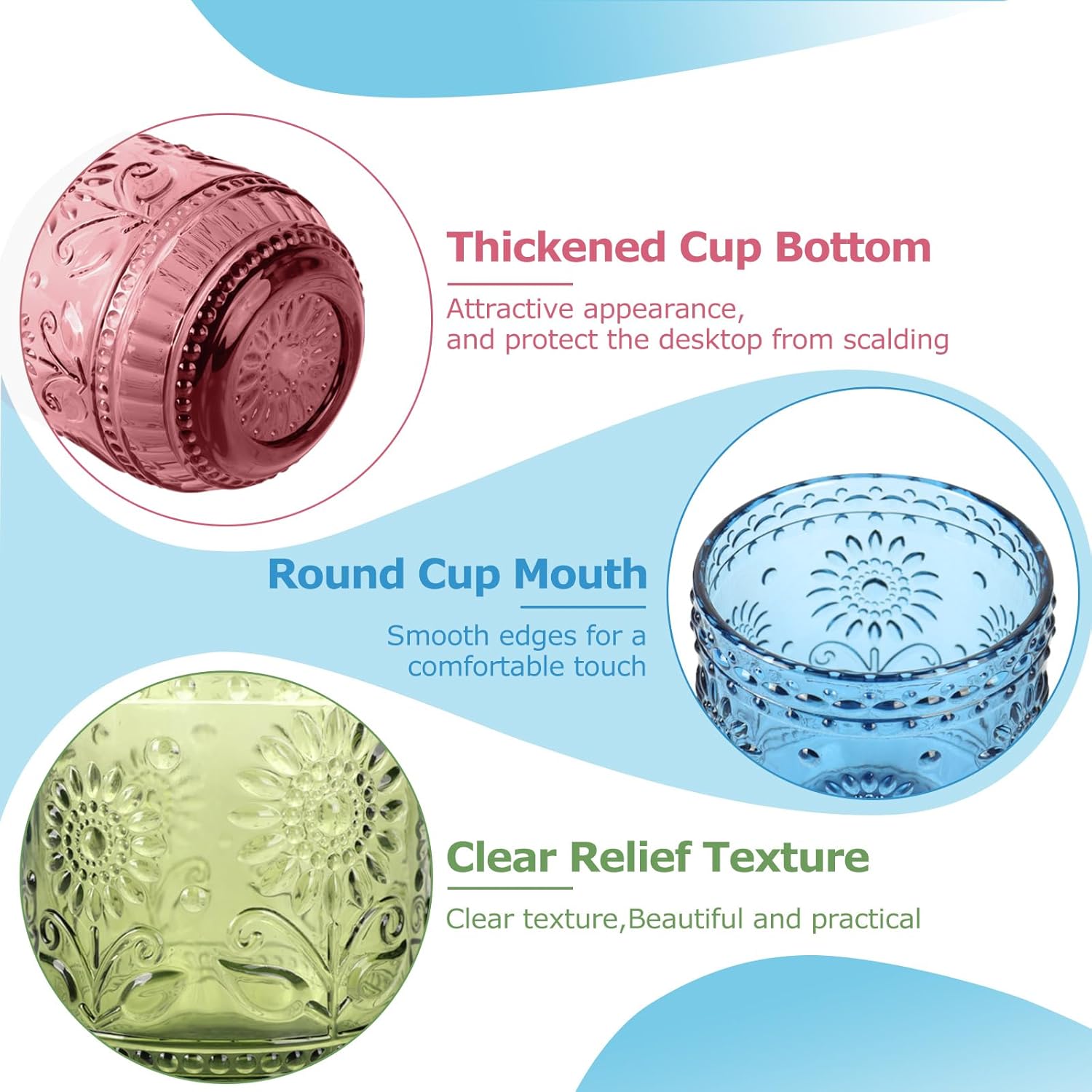 • 【Vintage Style】: With its retro-inspired design and embossed detailing, these vintage glasses drinking set exude a timeless appeal that complements any home decor or special occasion.