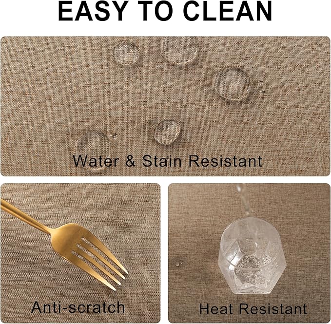 • Premium Fabric: DWCN tablecloth is made of high quality polyester with faux linen texture. It is meticulously stitched with no loose threads and is free from any chemical odors. Providing a luxurious feel for your dining table.