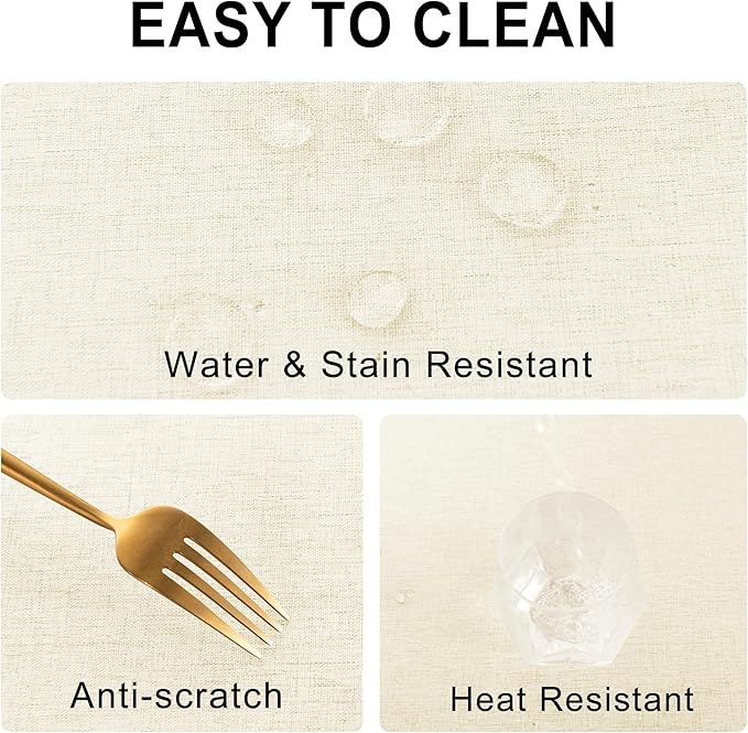 • Premium Fabric: DWCN tablecloth is made of high quality polyester with faux linen texture. It is meticulously stitched with no loose threads and is free from any chemical odors. Providing a luxurious feel for your dining table.