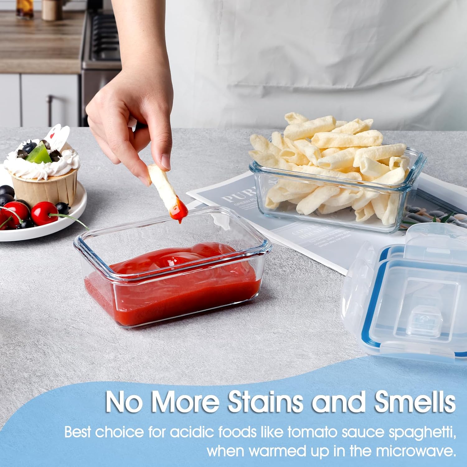 • 【Easy to See】Clear glass storage boxes are made of tempered glass, which has a high transparency, allowing you to clearly see foods inside the box and making it easy to find and access them.
