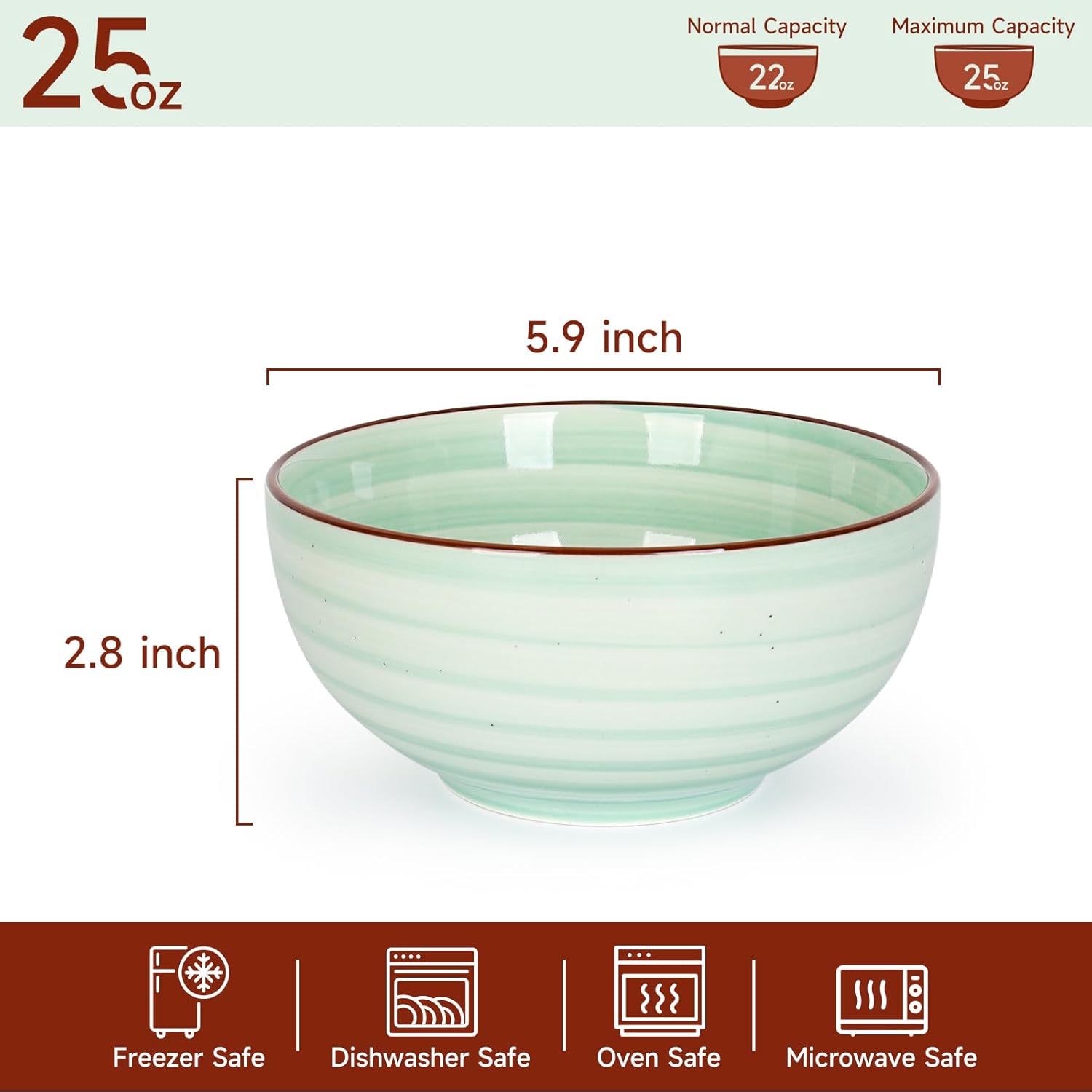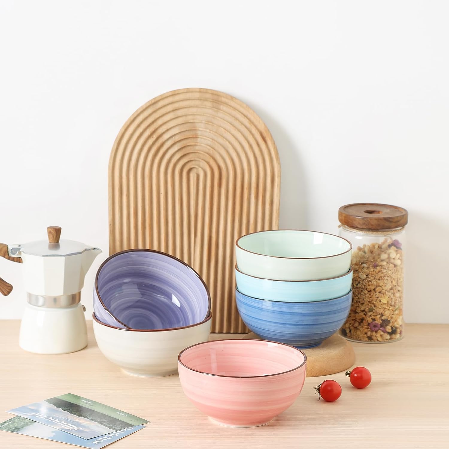 KitchenTour 24 OZ Cereal Bowls Set of 6, Ceramic Soup Bowls for Kitchen, 5.9 Inch Colorful Serving Bowls for Oatmeal, Salad, Pasta, Dessert - Microwave & Dishwasher Safe, Assorted Warm Colors