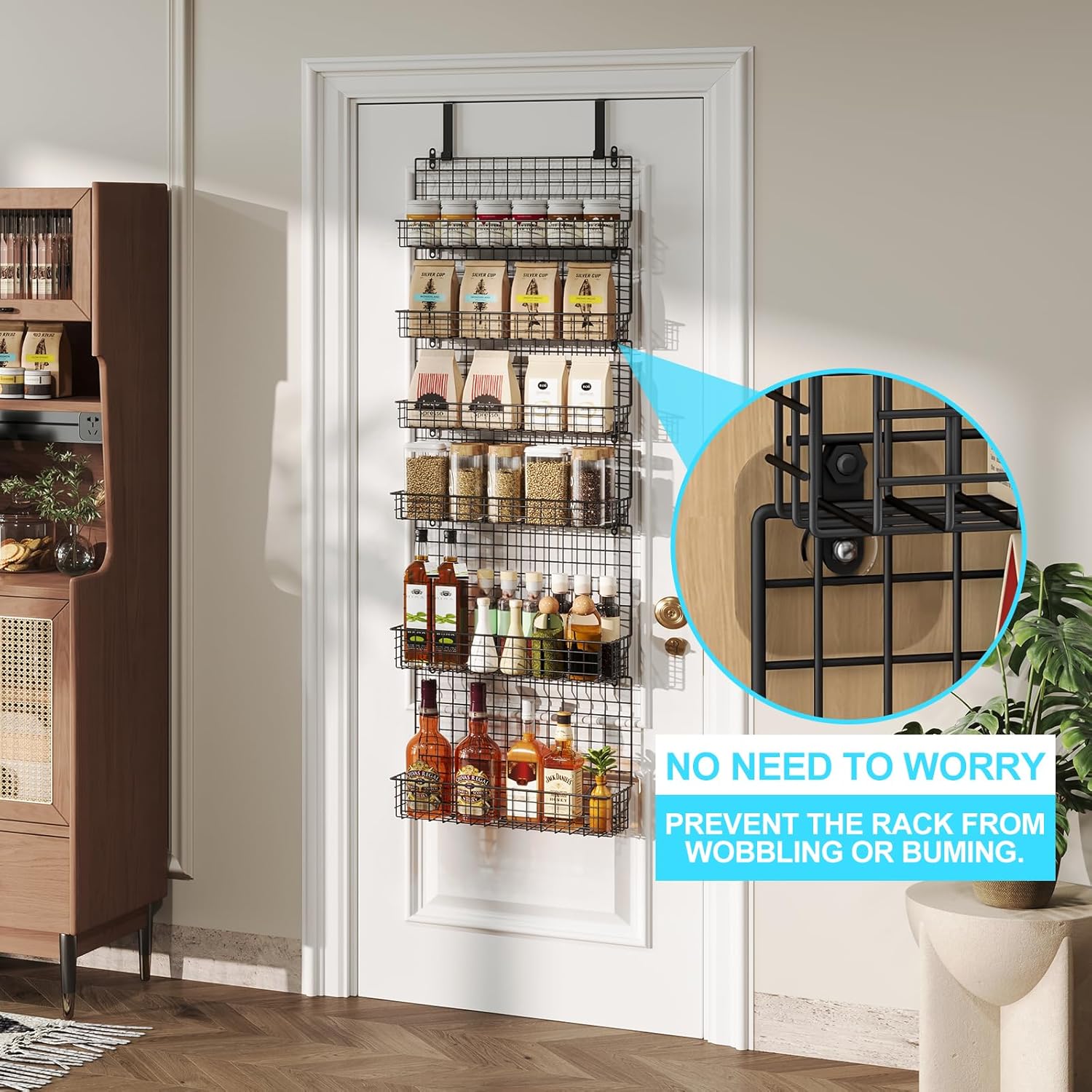 JKsmart High Capacity 6-Tier Spice Rack Organizer with Door Hook, Wall-Mounted & Over-the-Door for Kitchen Pantry Cabinet - Black