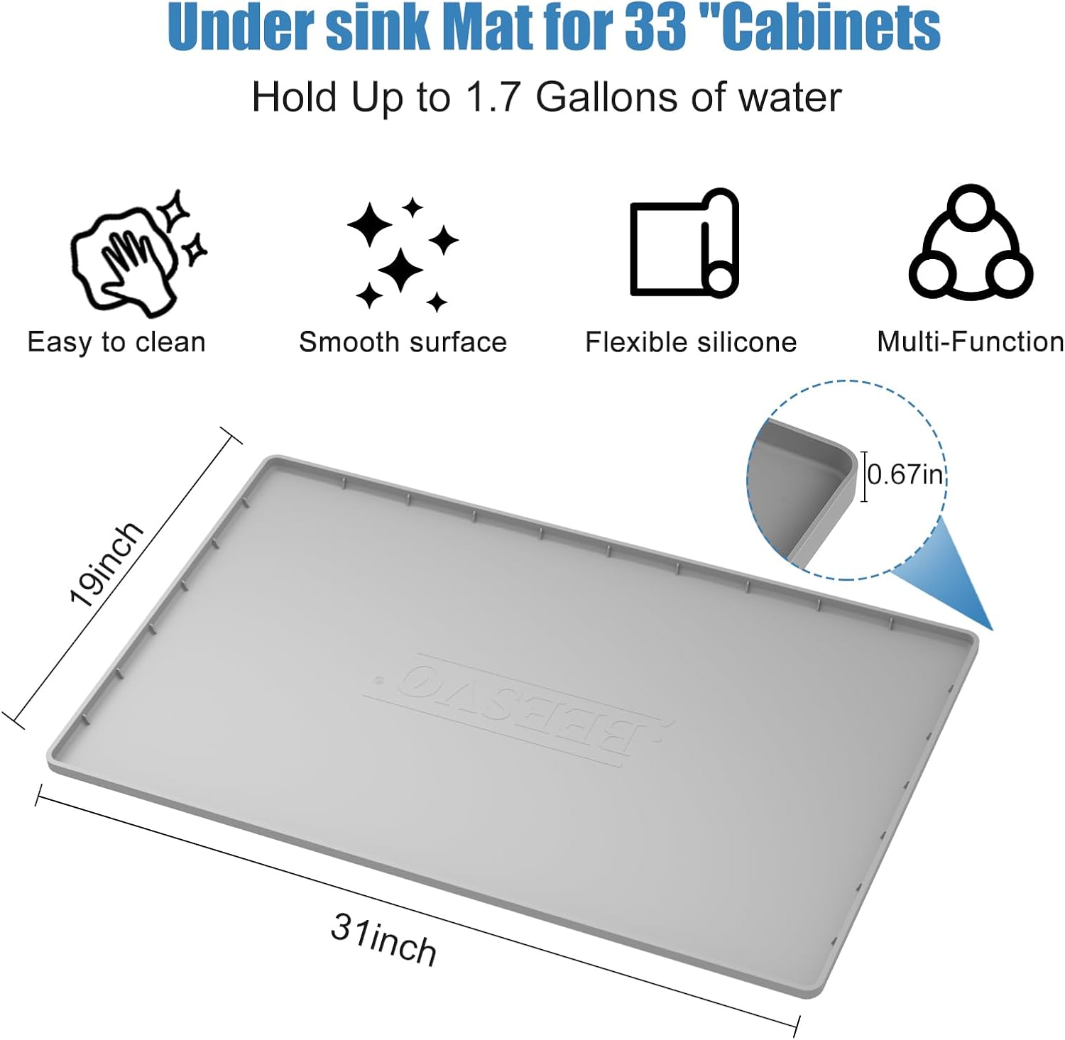 • 【Applicable 33" Base Cabinets】Our under sink mat is made of food-grade silicone and designed for standard 33" cabinets and size of 31" x 19" x 0.67".