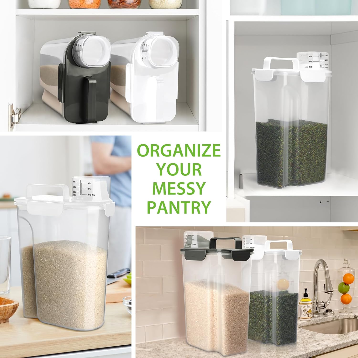• CLEAR VISIBILITY&ORGANIZE BETTER- Clear container lets you identify contents at a glance. The rice container storage will keep your kitchen pantry neat and organized. And portable handle, easy to move and go out