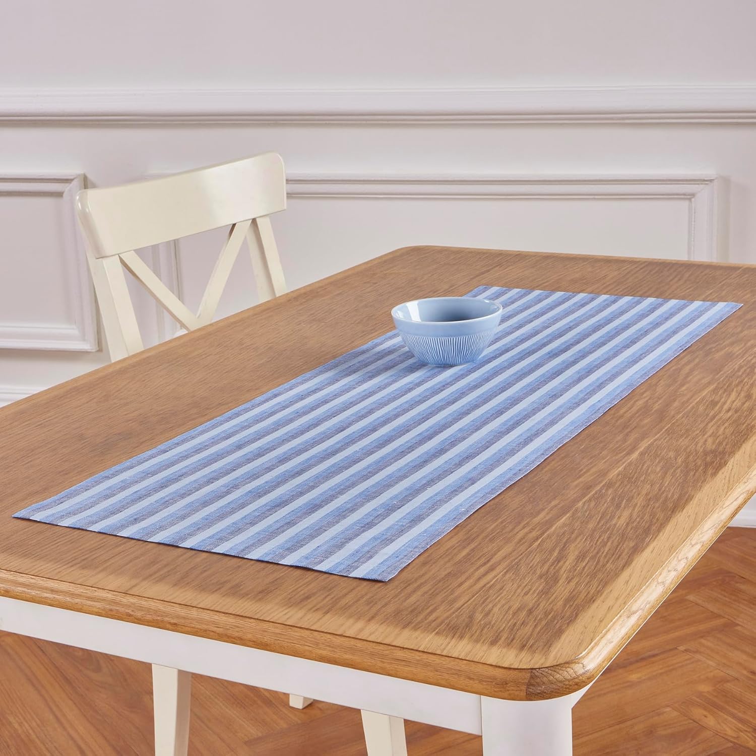 Solino Home Linen Table Runner 36 Inches - Amalfi Stripe 100% Pure Linen Bistro Blue Table Runner 14 x 36 Inch Ideal for Dresser and Coffee Tables