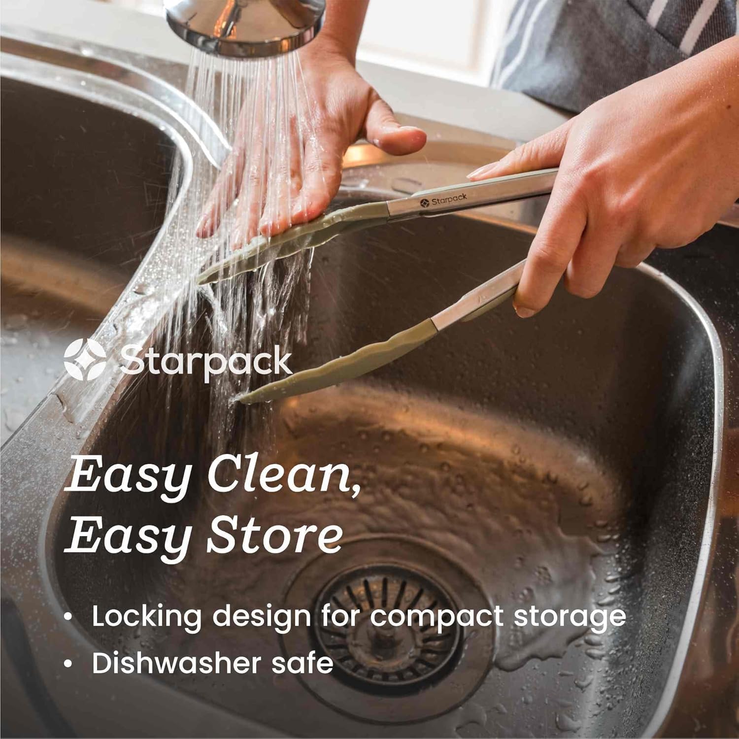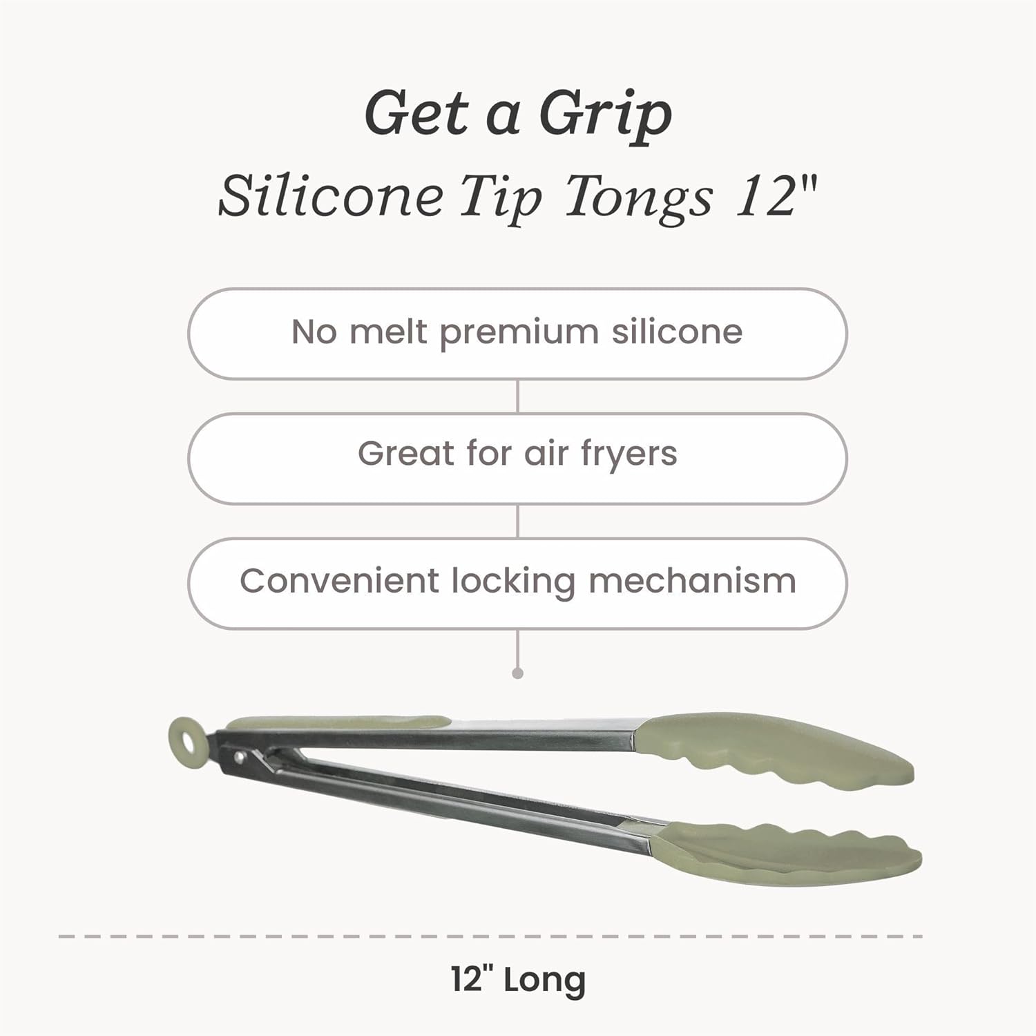• Get a Grip 12 inch Tongs:12" Handle (13" including lock). Easy clean, easy store - dishwasher safe or just wash with warm water, our silicone tongs lock closed for easy storage